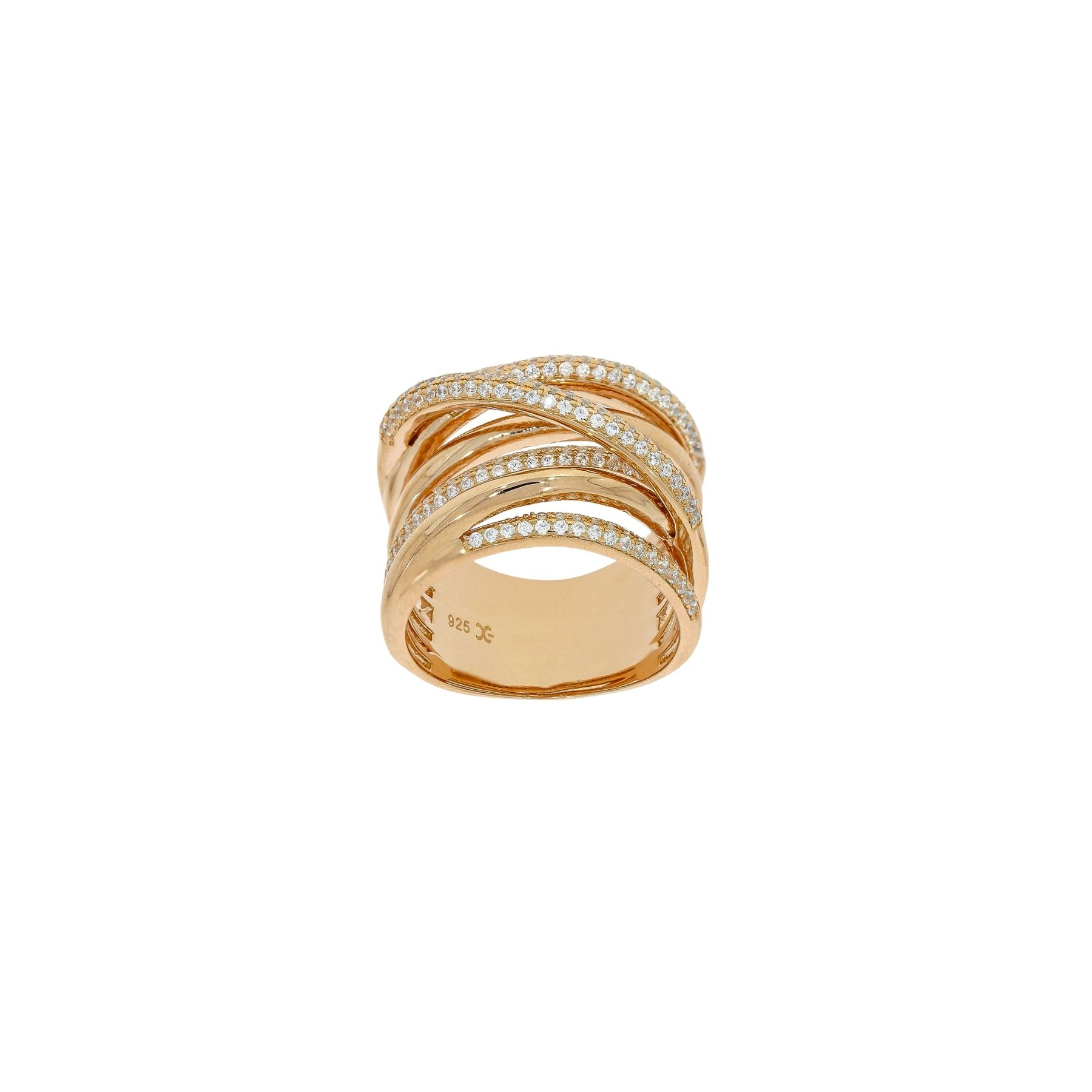 Bague multi lignes en Argent 925 Rose Gold, sertie de petits zirconiums Blancs. Largeur 16 mm.