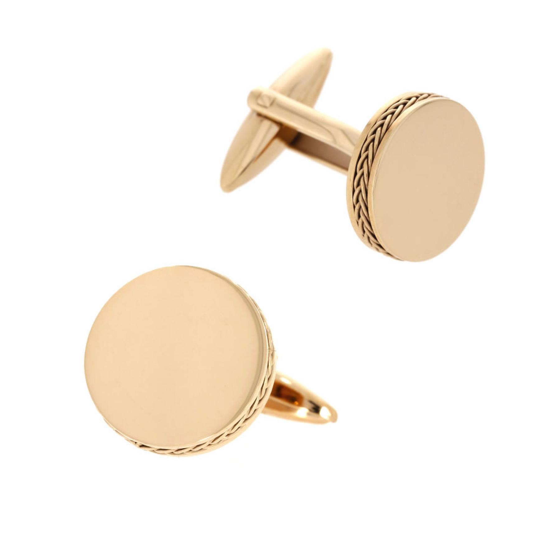 Boutons de manchettes en Acier 316L rose PVD inoxydable. Surface polie miroir. Diamètre 17 mm.