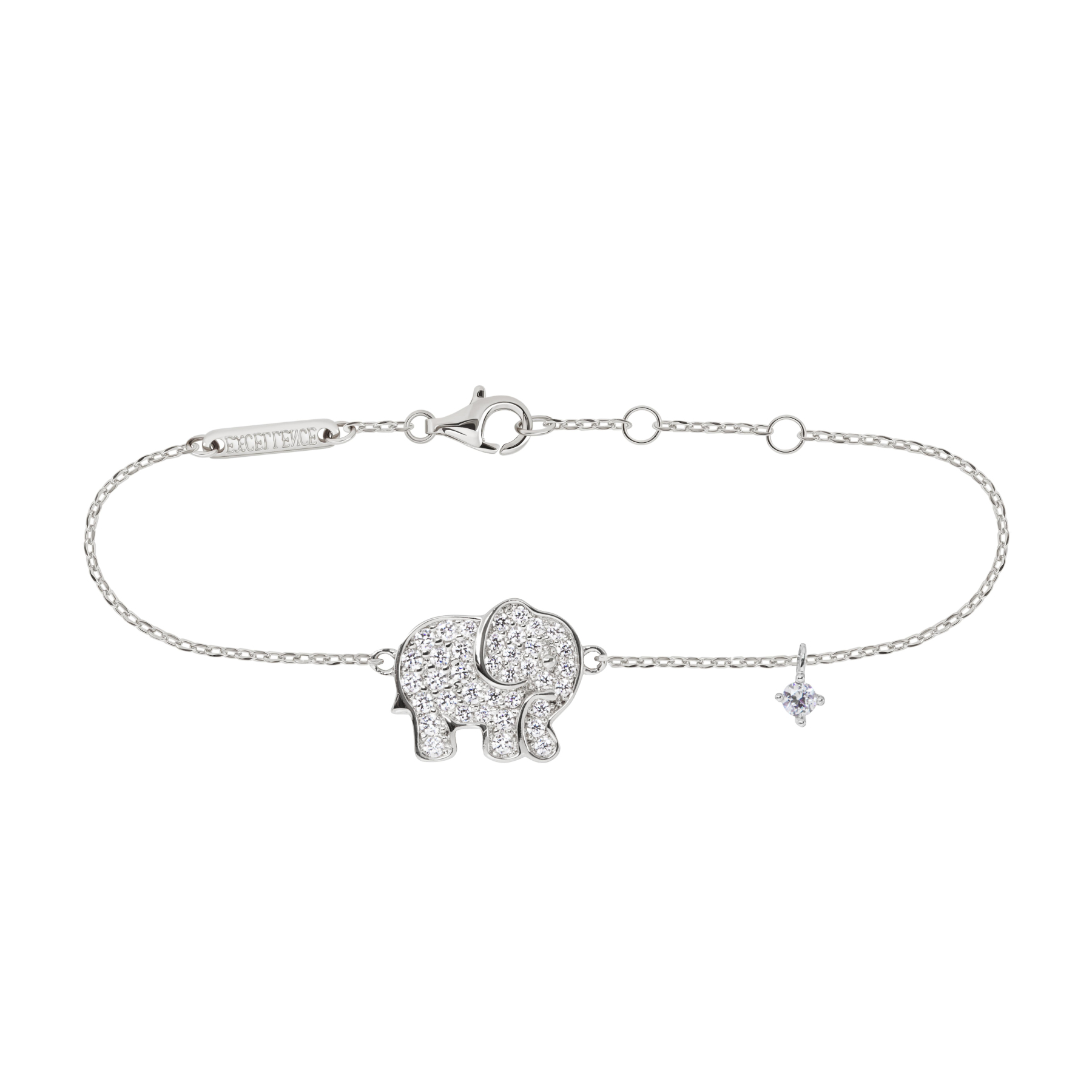 Gourmette Éléphant en Argent 925 Rhodié, serti de zirconiums blancs . Longueur 160 mm - 170 mm - 180 mm. Diamètre du motif 13 x 11 mm.