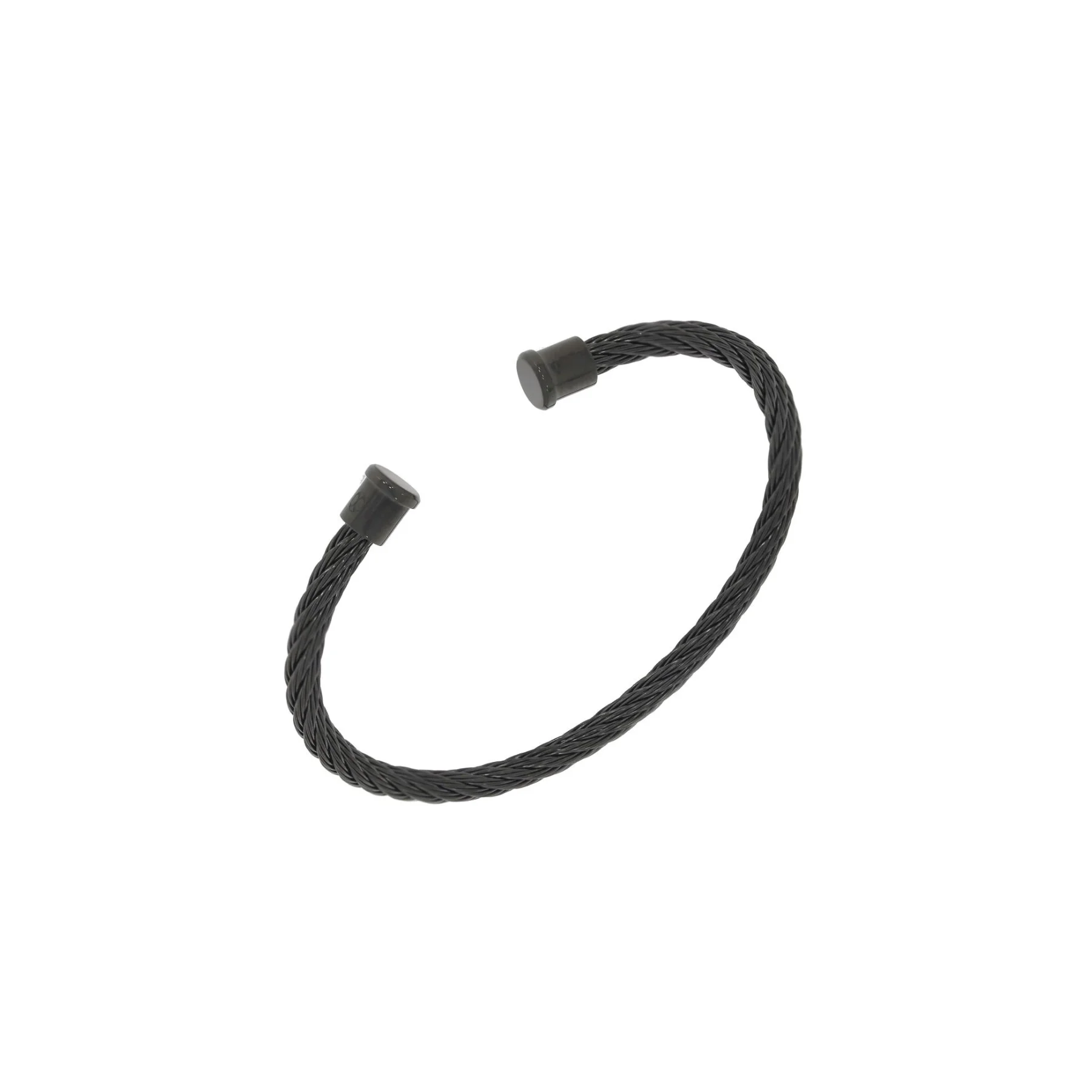 UnisexeBracelet en câble dacier tressé inoxydable 316L Black PVD, épaisseur 4mm, diamètre 48 x 63 mm - Medium.