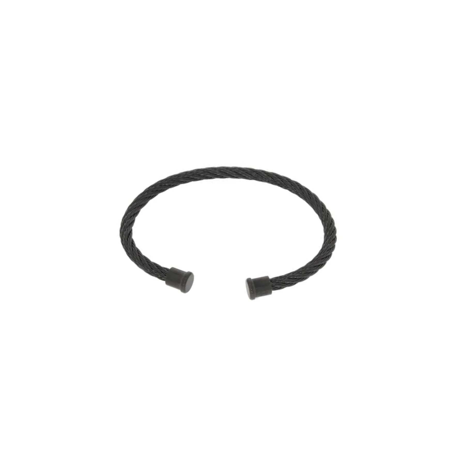 UnisexeBracelet en câble dacier tressé inoxydable 316L Black PVD, épaisseur 4mm, diamètre 44 x 58 mm - Small.