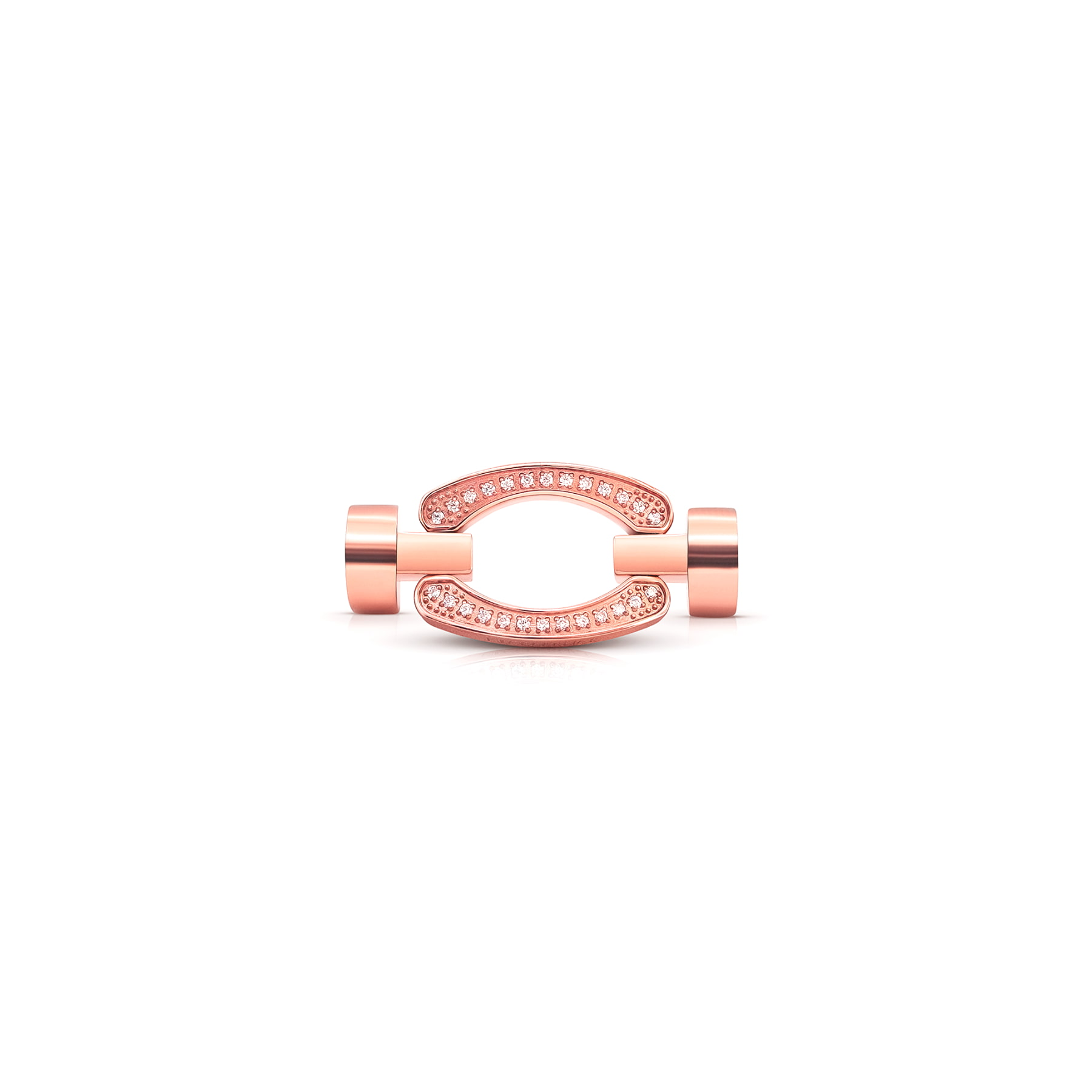 Fermoir interchangeable en Acier inoxydable 316L PVD Rose Serti de petits Zirconium, longueur de la boucle 30mm, largeur 15mm.
