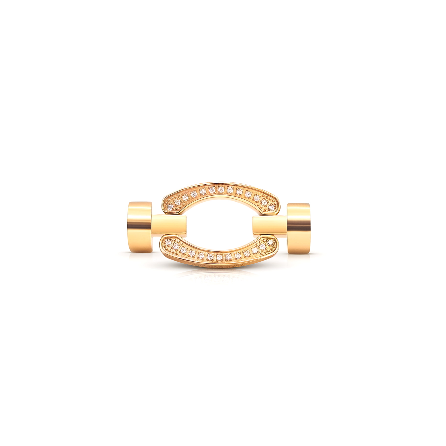 UnisexeFermoir interchangeable en Acier inoxydable 316L PVD Yellow Serti de petits Zirconium, longueur de la boucle 30mm, largeur 15mm.