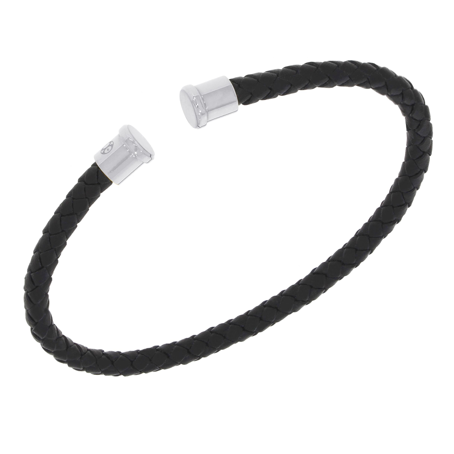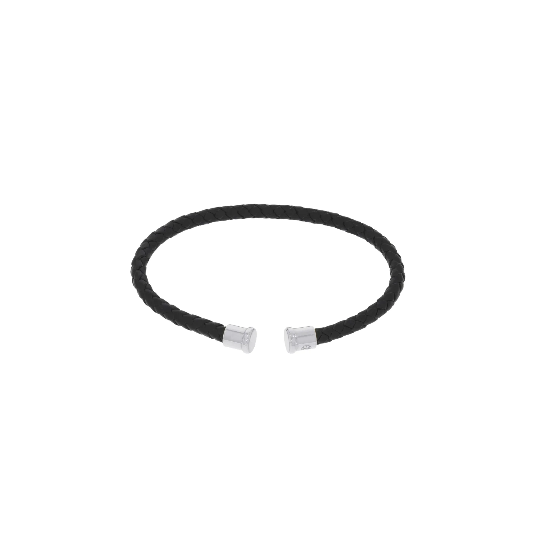 Lanière en cuir tressé noir de qualité Italienne, épaisseur 4mm, avec embouts en acier 316L W inoxydable.