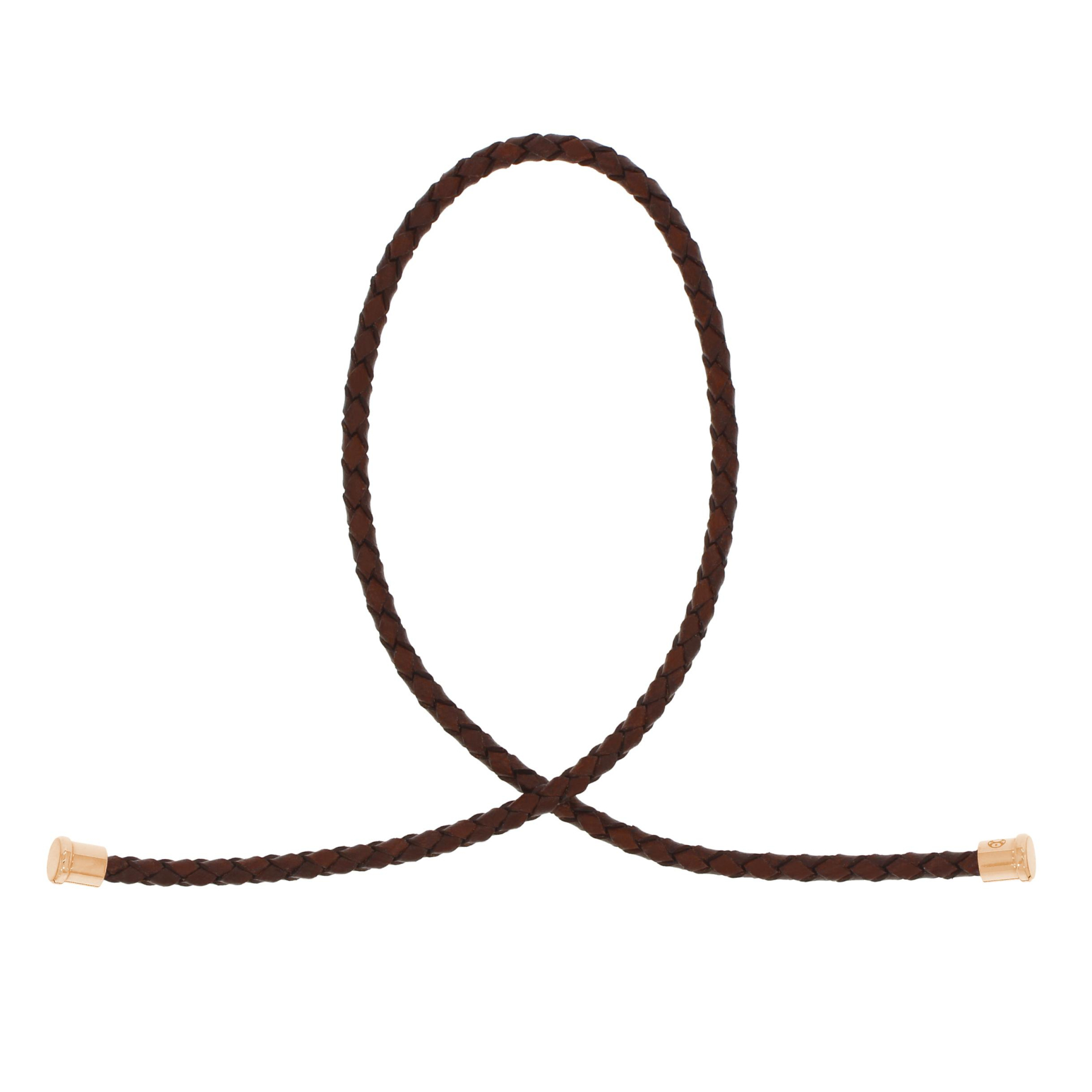 Lanière double tours en cuir tressé marron foncé de qualité Italienne, épaisseur du cuir 3mm, avec embouts en Acier RG 316L inoxydable.