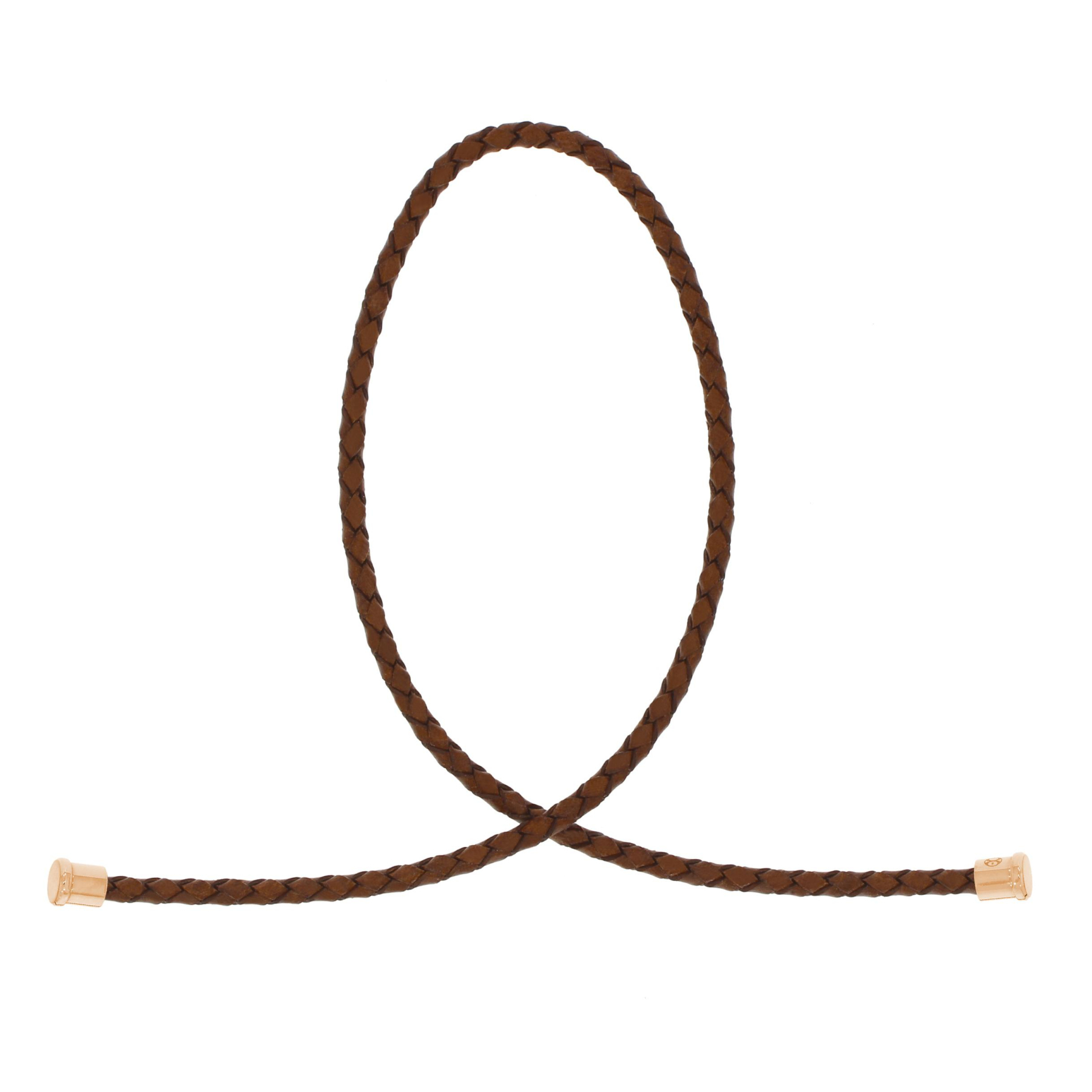 Lanière double tours en cuir tressé marron clair de qualité Italienne, épaisseur du cuir 3mm, avec embouts en Acier RG 316L inoxydable.