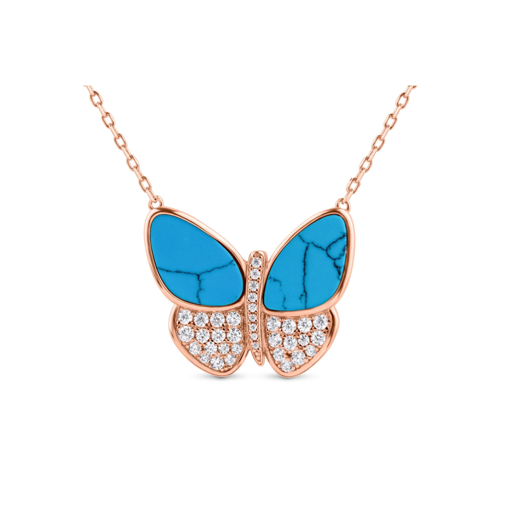 Ce Collier Papillon est bien plus qu'un simple accessoire. L' Argent rose Gold garantit sa durabilité, tandis que la Turquoise naturelle en fait un objet unique. La marguerite apporte quant à elle une touche de fantaisie distinguée. Un équilibre parfait entre tradition joaillière et modernité.
