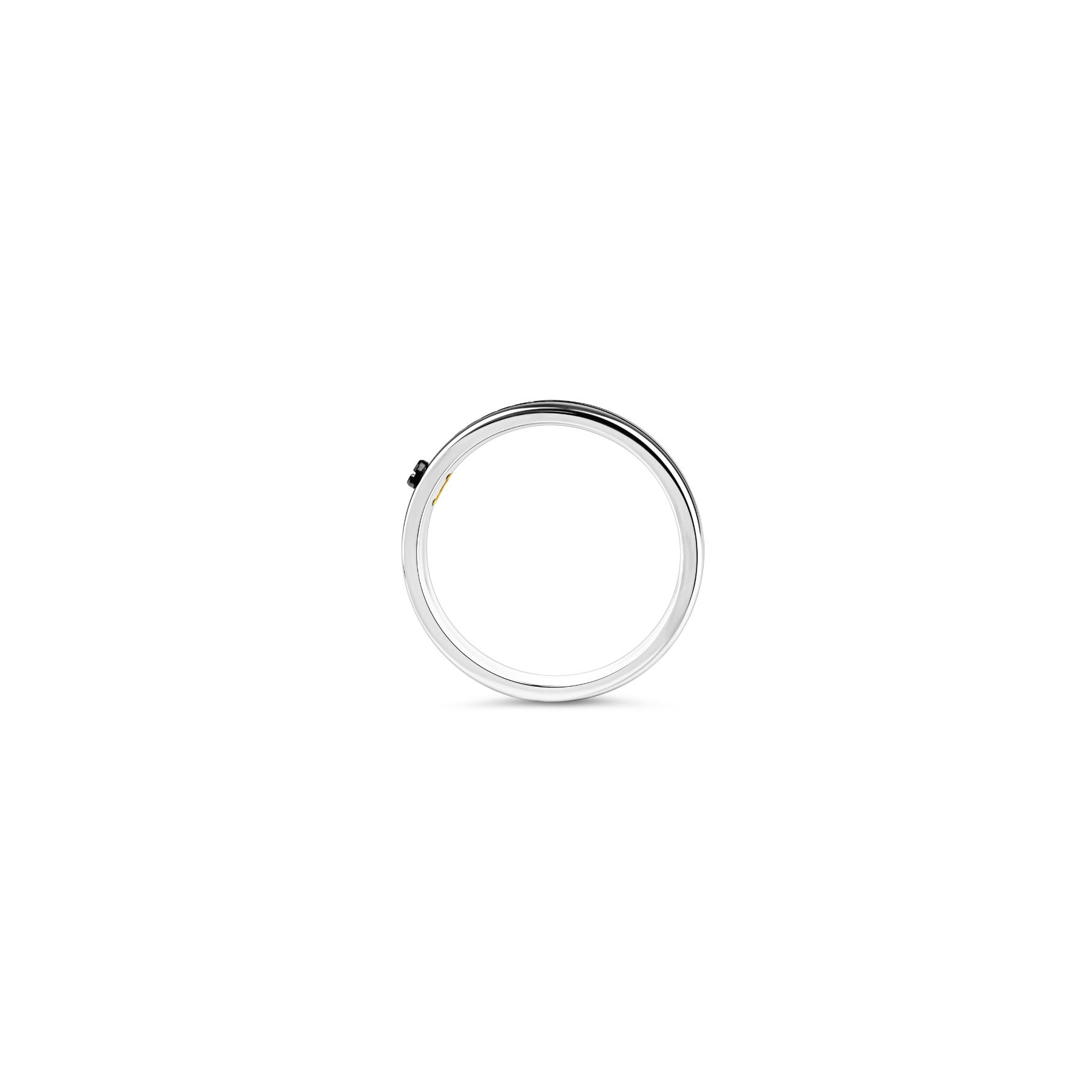 Alliance Excellence en Acier 316L inoxydable, 1 cable noir encastré sous 1 clou noir. Logo Excellence en Or 18k soudé a l'interieur de l'anneau. Largeur 4 mm.