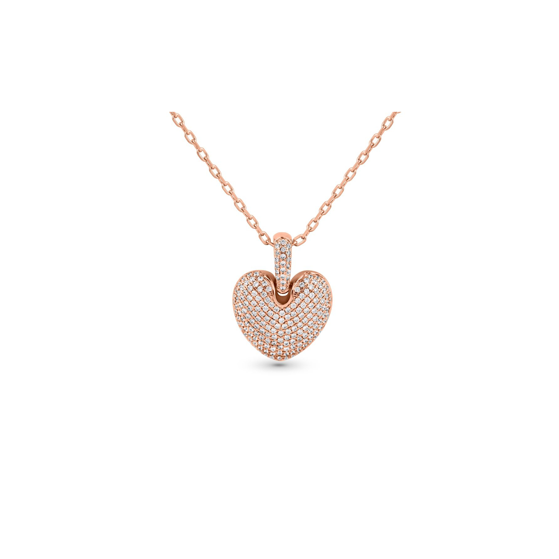 FEMMEPendentif c◊ur en Argent 925 rose gold, pavé de zirconiums blancs. Dimensions 18 x 25 mm.