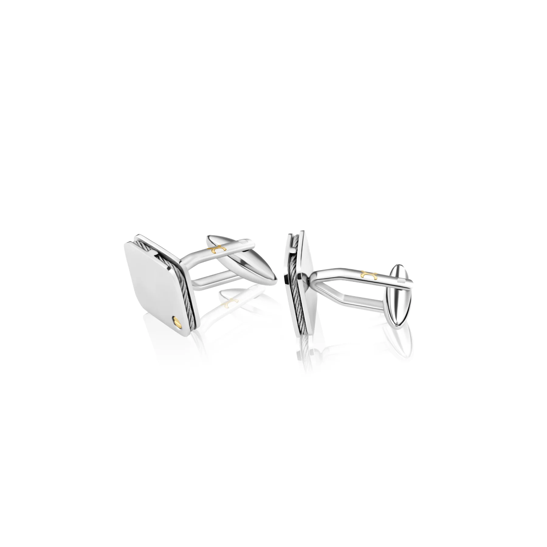 Ces boutons de manchettes Excellence présentent une tête carrée de 15 x 15 mm, entourée d’un câble gris qui souligne leur silhouette avec modernité. Le logo Excellence, également en Or 18K, est soudé avec précision sur le corps du bouton, témoignant d’un souci du détail et d’un savoir-faire de qualité. Chaque élément a été pensé pour offrir un équilibre entre robustesse et esthétique, idéal pour accompagner les chemises habillées lors d’événements ou de réunions importantes.
