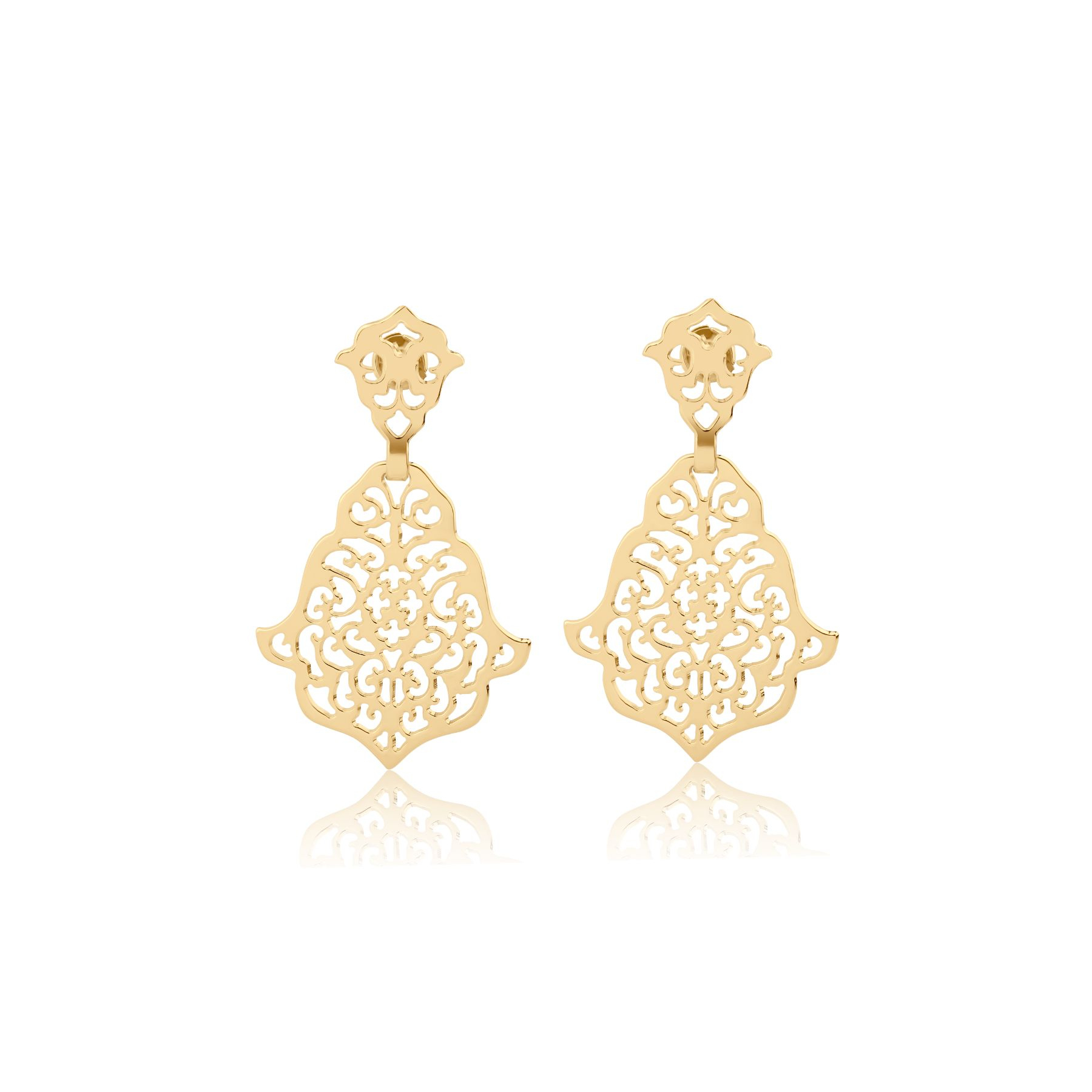 Les Boucles Khmissa Excellence incarnent l’alliance parfaite entre tradition et modernité. Conçues pour la femme élégante, ces boucles pour femme arborent un motif Khmissa, magnifiquement travaillé en plaqué or 18K . Avec leurs dimensions de 52 mm de hauteur et 32 mm de largeur, elles apportent une touche de sophistication à toutes vos tenues.