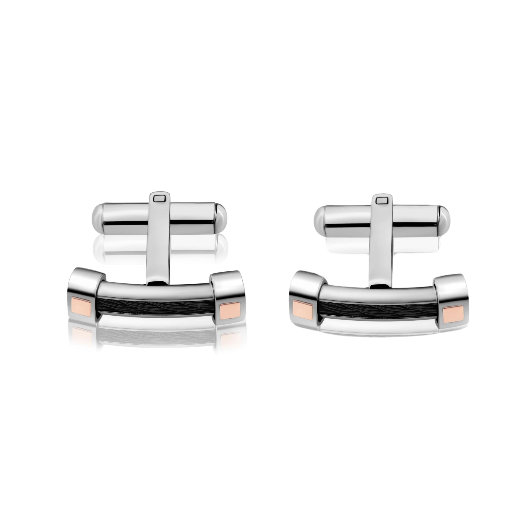 Le design unique intègre un câble noir qui souligne avec finesse la tête des boutons, mesurant 23 x 7 mm, ornée de motifs en or 750/1000. Ce contraste entre l’acier froid et l’éclat chaud de l’or crée une harmonie esthétique parfaite, idéale pour rehausser un costume ou une chemise de manière sophistiquée.