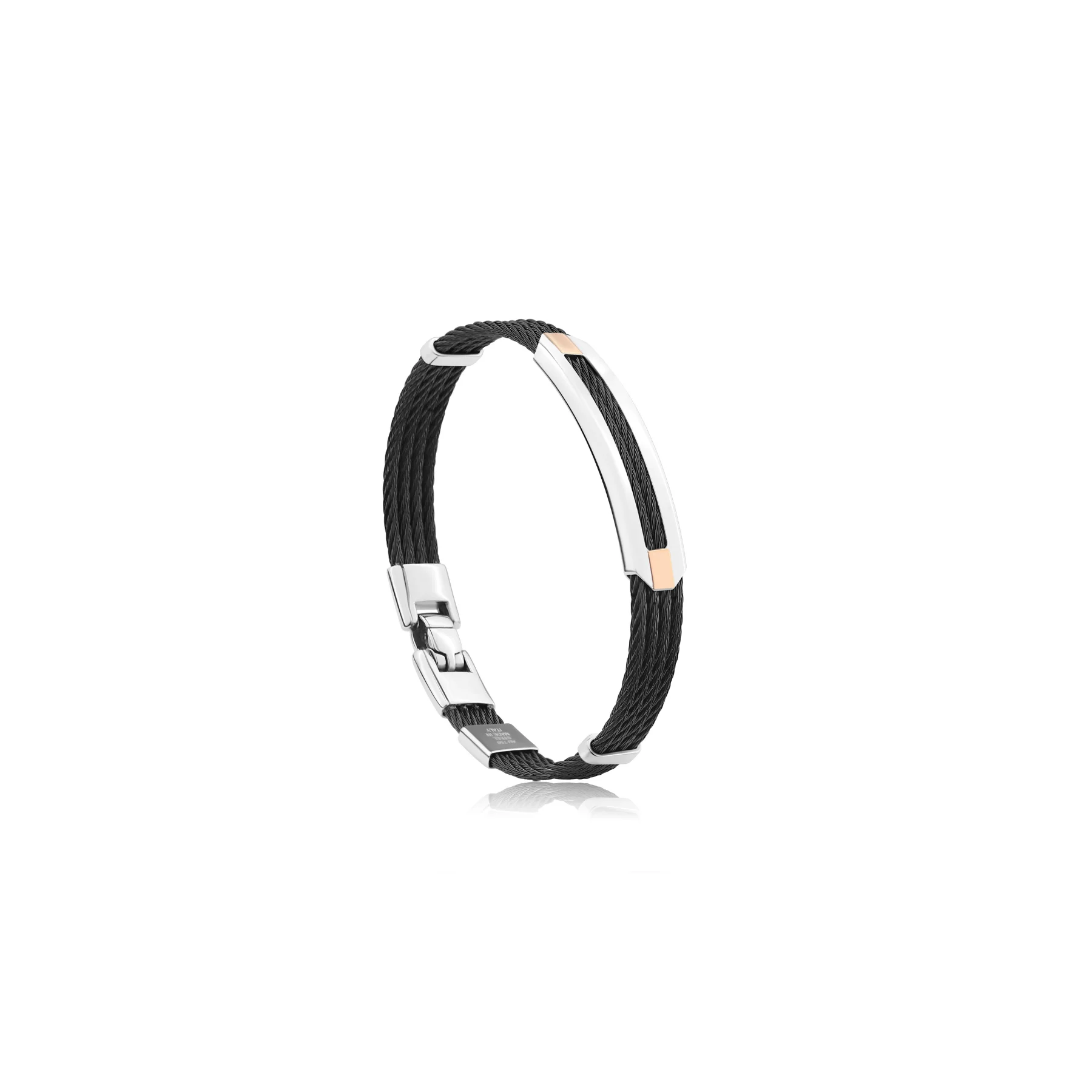 Élégant et sophistiqué, ce bracelet rigide en Acier 316L est conçu pour les hommes en quête d’un bijou à la fois robuste et raffiné. Son design allie modernité et élégance grâce à son câble noir et ses motifs en Or 750/1000, qui apportent une touche précieuse et distinctive.