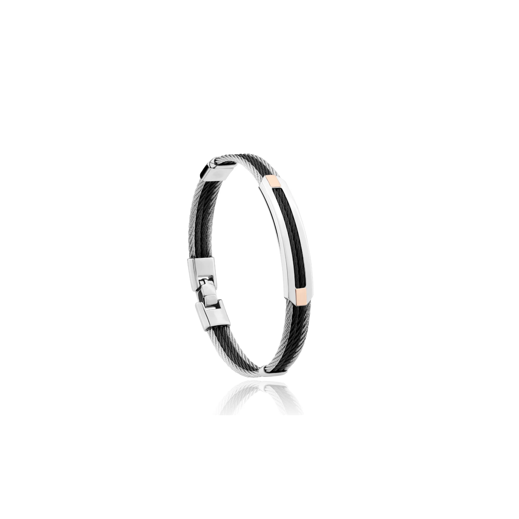 Le bracelet rigide en Acier 316L est un accessoire élégant qui se distingue par sa robustesse et son design raffiné. Conçu pour les amateurs de bijoux de qualité, ce bracelet rigide allie la résistance de l’Acier 316L à l’élégance des motifs en Or 750/1000. Le bracelet rigide est orné de détails en Or subtils et raffinés, créant un contraste parfait avec le câble gris et noir. Ce bracelet pour homme est une pièce idéale pour compléter un look moderne et sophistiqué.