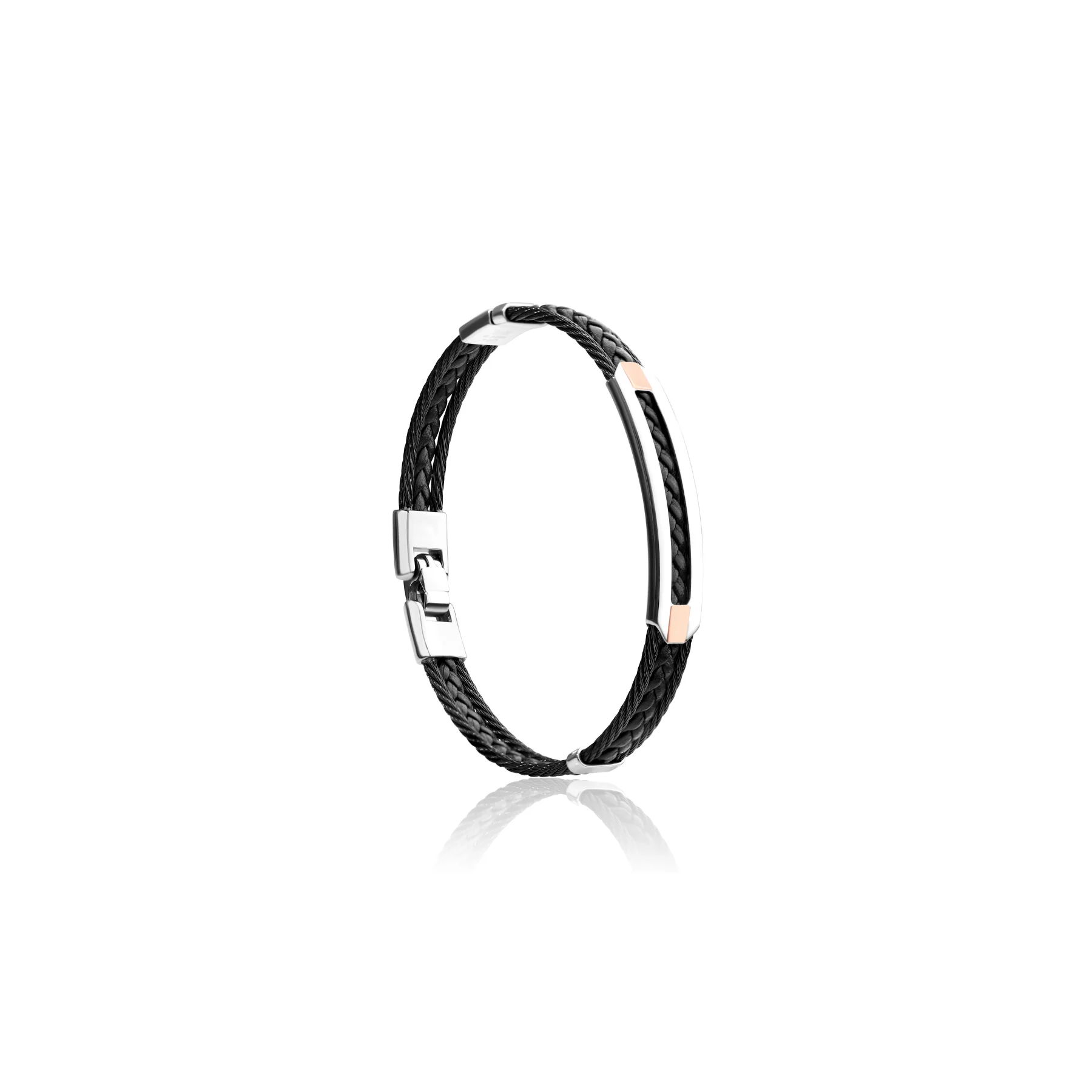 Le bracelet rigide en Acier 316L, avec un mélange subtil de câble et de cuir noir, est une pièce élégante et moderne, idéale pour ceux qui recherchent un bracelet pour homme unique. Ce bracelet allie la solidité de l’acier 316L à l’esthétique de l’Or 750/1000, grâce à ses motifs raffinés qui ajoutent une touche de luxe et de sophistication à votre poignet.