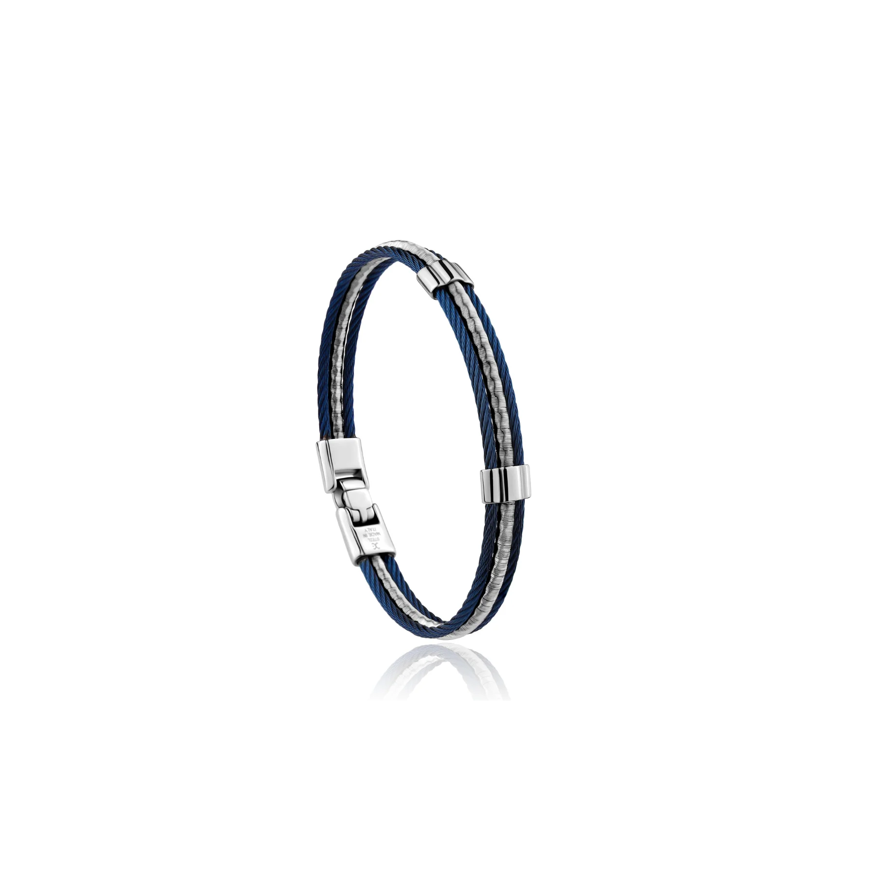 Le design épuré du bracelet rigide se distingue par un câble noir subtilement intégré, apportant une touche de contraste et de modernité. La pièce centrale noire ajoute une note de sophistication, tout en restant discrète et élégante. Le diamètre intérieur de 65 x 52 mm est idéal pour s’adapter confortablement à la plupart des poignets masculins, offrant à la fois maintien et confort tout au long de la journée.