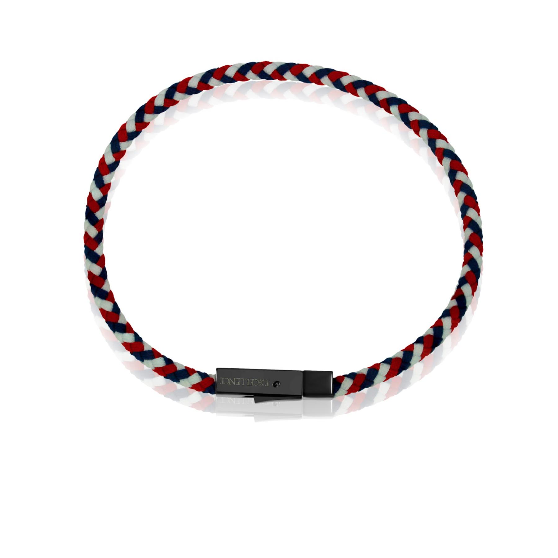 UnisexeBracelet en cotton tricolore tressé qualité Italienne, épaisseur 3 mm, fermoir acier 316 L PVD noir inoxydable.