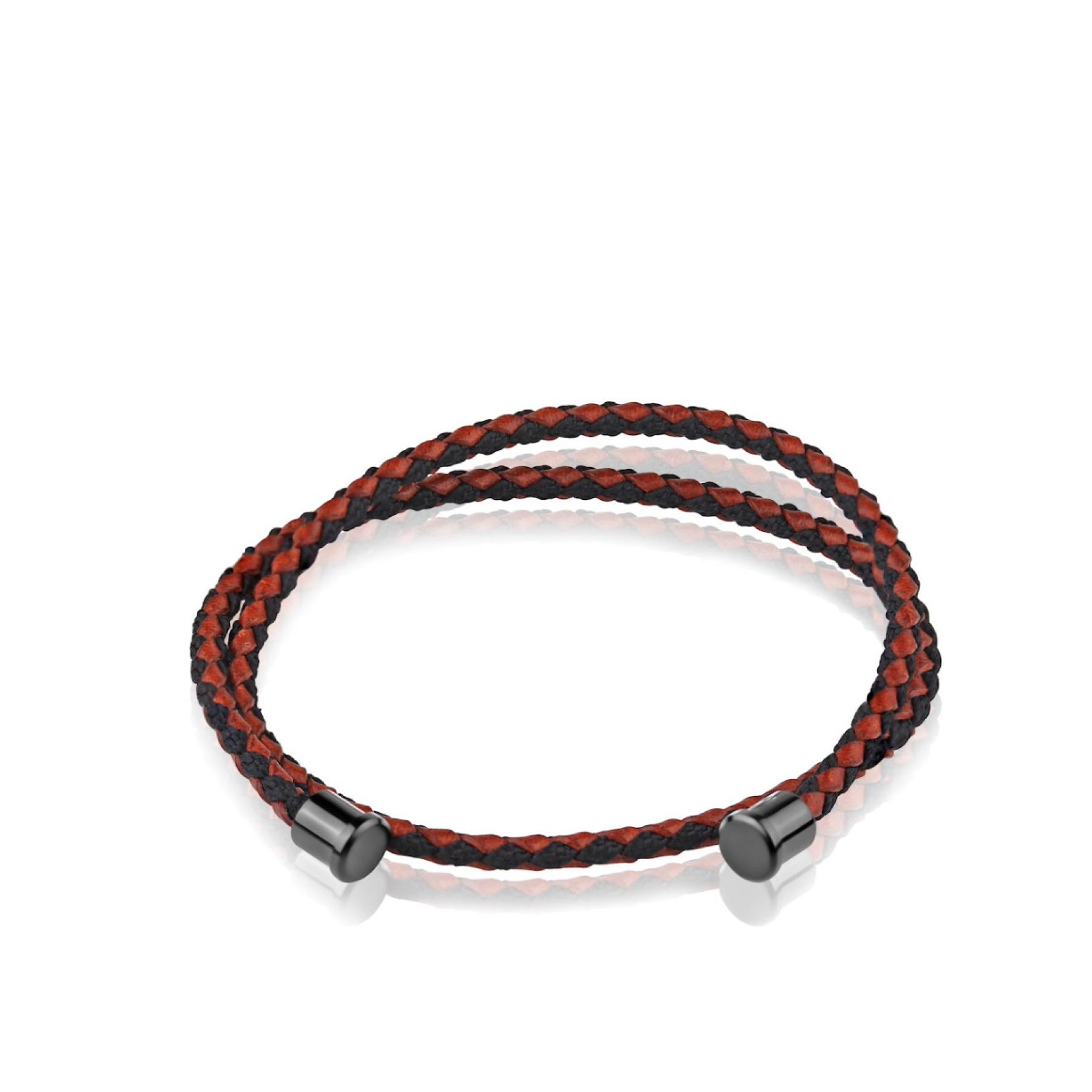 Lanière double tour en cuir & cotton tressé en marron foncé & noir, qualité Italienne, épaisseur du cuir 3mm, avec embouts en Acier W 316L PVD noir inoxydable.