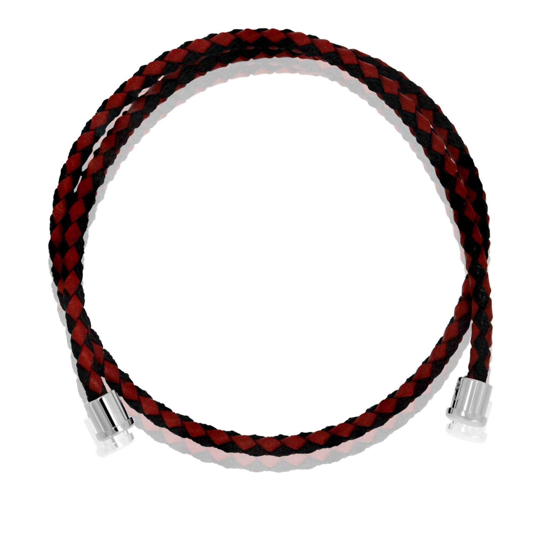 UnisexeLanière double tour en cuir & cotton tressé en rouge & noir, qualité Italienne, épaisseur du cuir 3mm, avec embouts en Acier W 316L inoxydable.