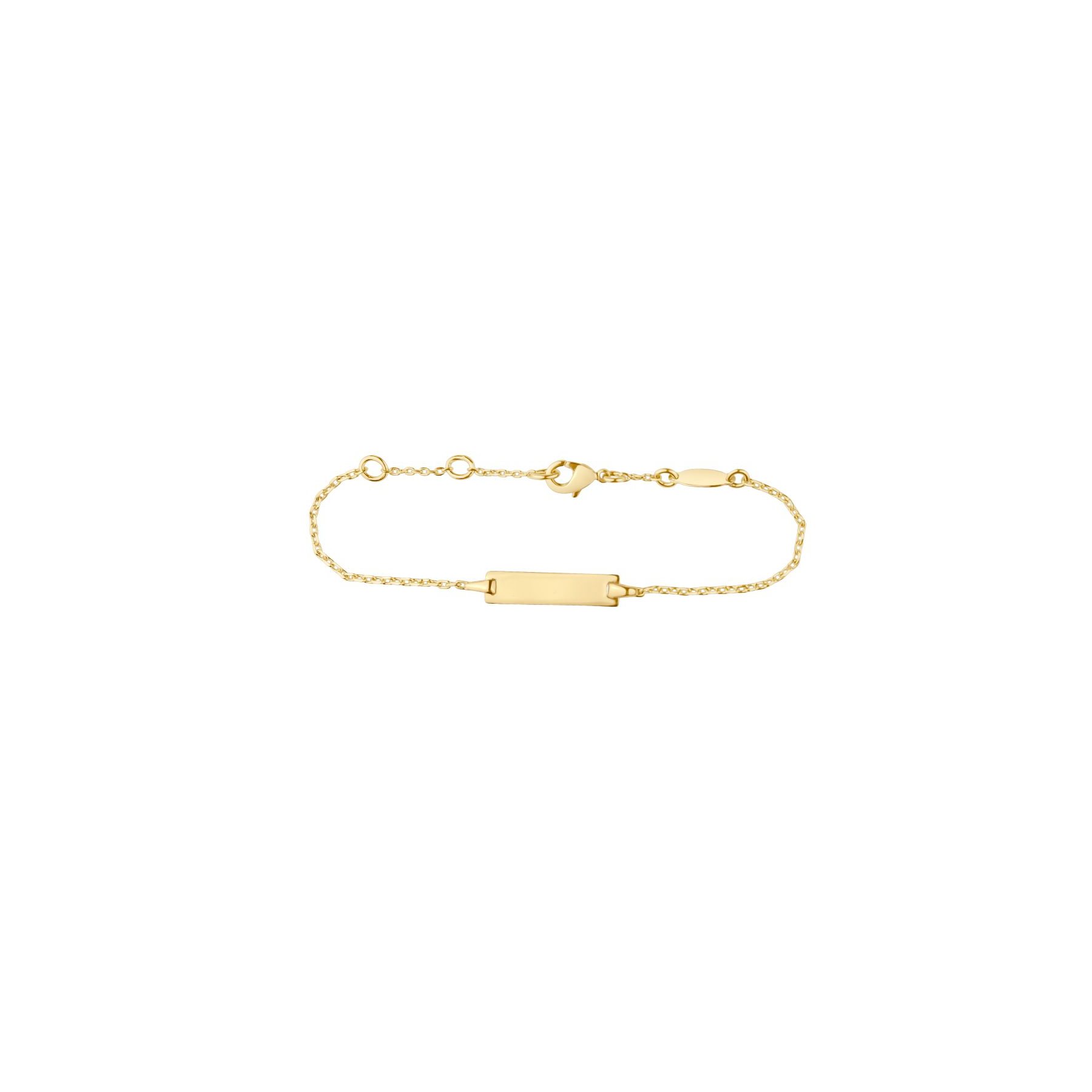 UnisexeGourmette Identité en Plaqué Or 18K 3Mic. Pièce centrale de 20 mm par 5 mm. Longueur totale 140 - 152,5 - 165 mm.