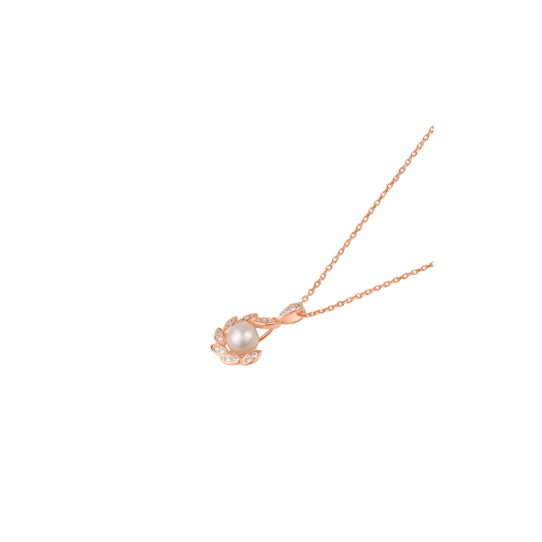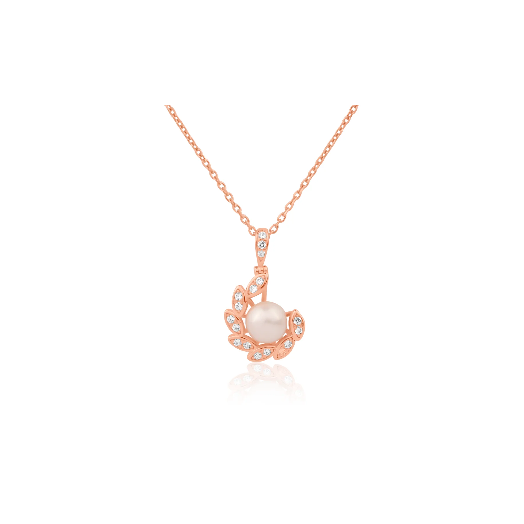 Pendentif en Argent 925 rose gold, orné d'une perle de culture d'eau douce, serti de zirconiums, illusion navettes. Diamètre du pendentif 12 mm.