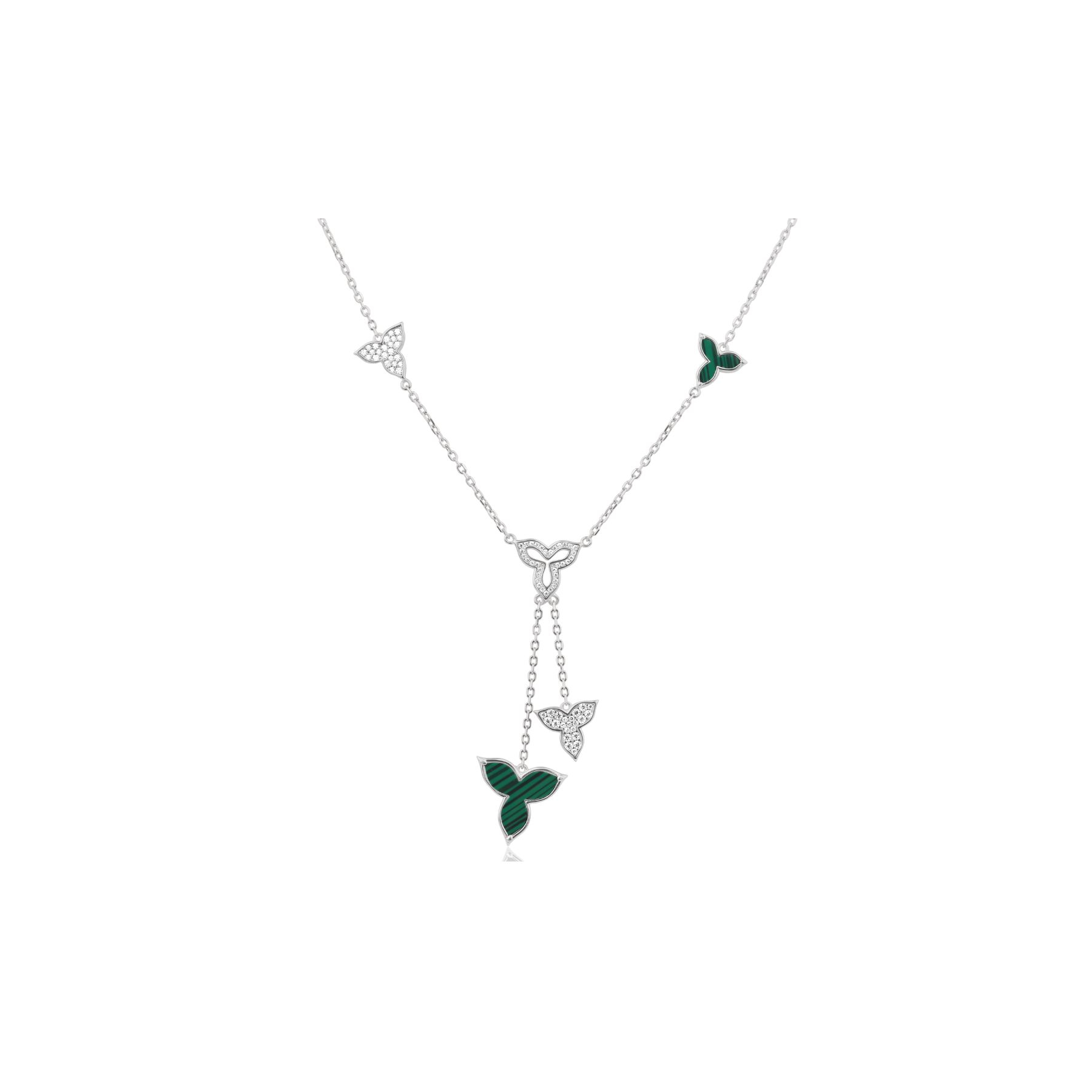 La chaîne, disponible en trois longueurs (420, 435 ou 450 mm), offre un ajustement parfait. Ce collier avec zirconiums blancs met en valeur les motifs floraux sertis, alternant malachite et pierres scintillantes. Un équilibre harmonieux entre minéral et brillance. Sa versatilité en fait un compagnon idéal pour les saisons, les envies et les styles variés.