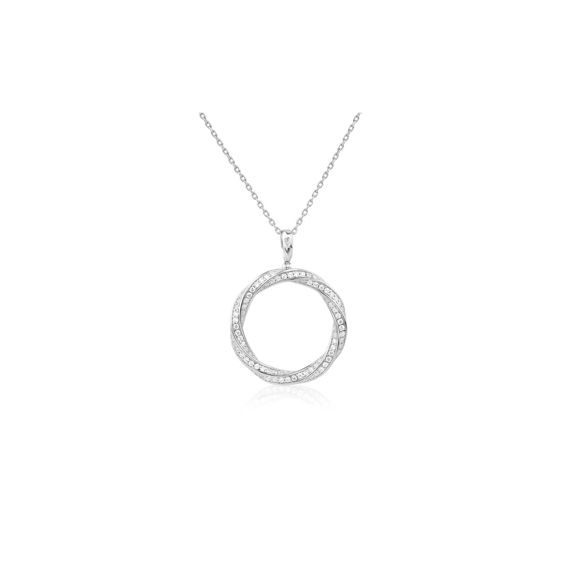 FEMMEPendentif circulaire torsadé en Argent 925 rhodié, serti de zirconiums. Diamètre 25 mm.