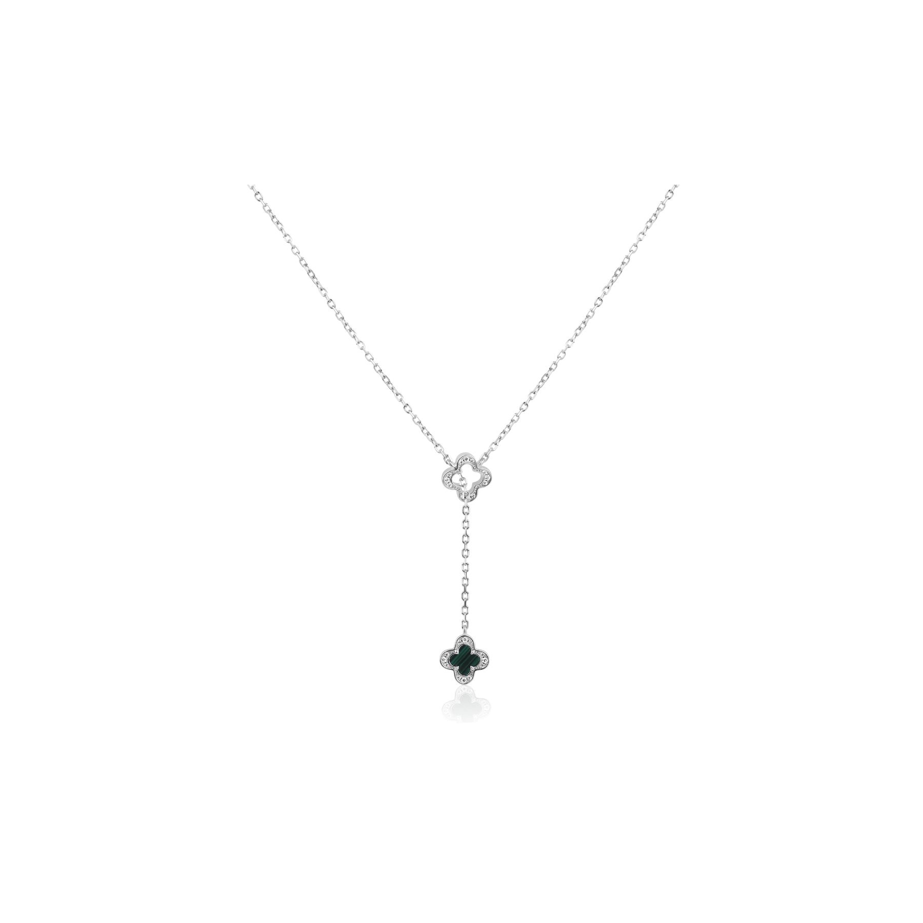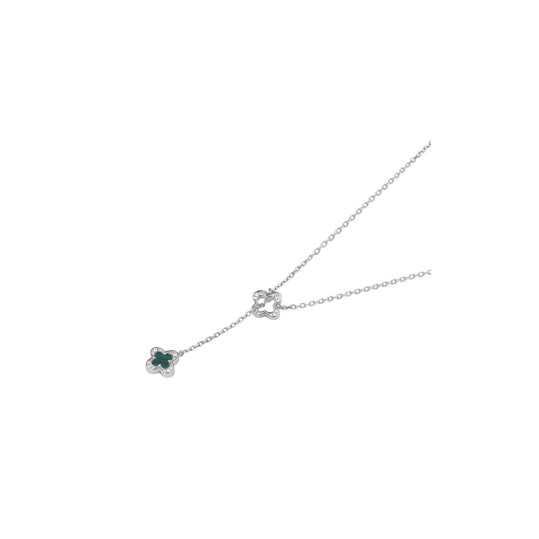 Collier trèfle Excellence en Argent 925 Rh & malachite