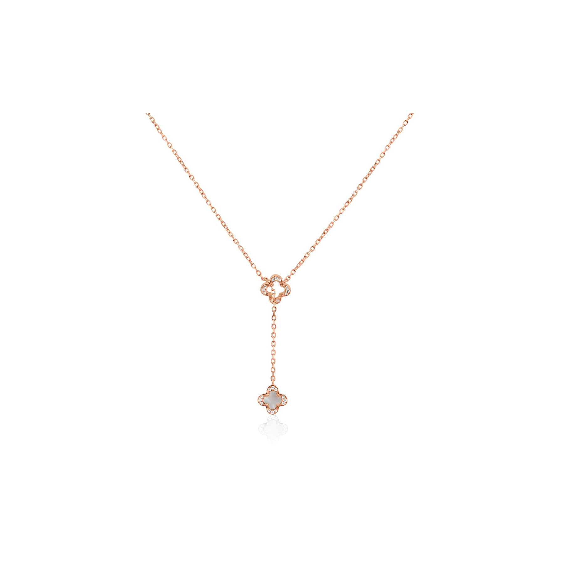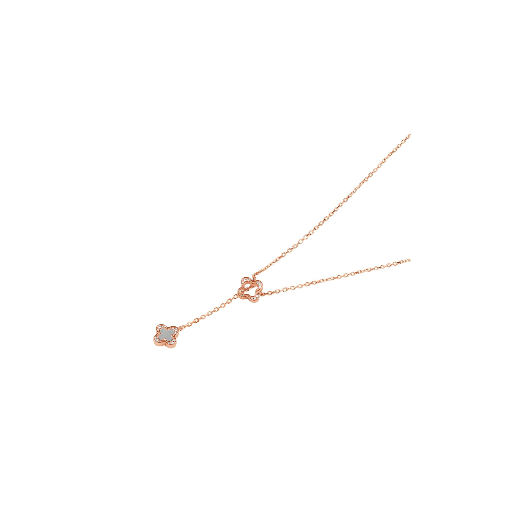 Offrez-vous un symbole d'élégance avec ce collier trèfle en argent 925 rose gold . Un bijou femme raffiné qui allie symbolisme et sophistication. Ce modèle unique met en valeur deux délicats trèfles ornés de nacre naturelle. Le contraste avec l’éclat des zirconiums blancs qui les entourent crée un effet à la fois raffiné et lumineux. Parfait pour le quotidien comme pour les occasions spéciales, ce collier apportera une touche de féminité à toutes vos tenues.