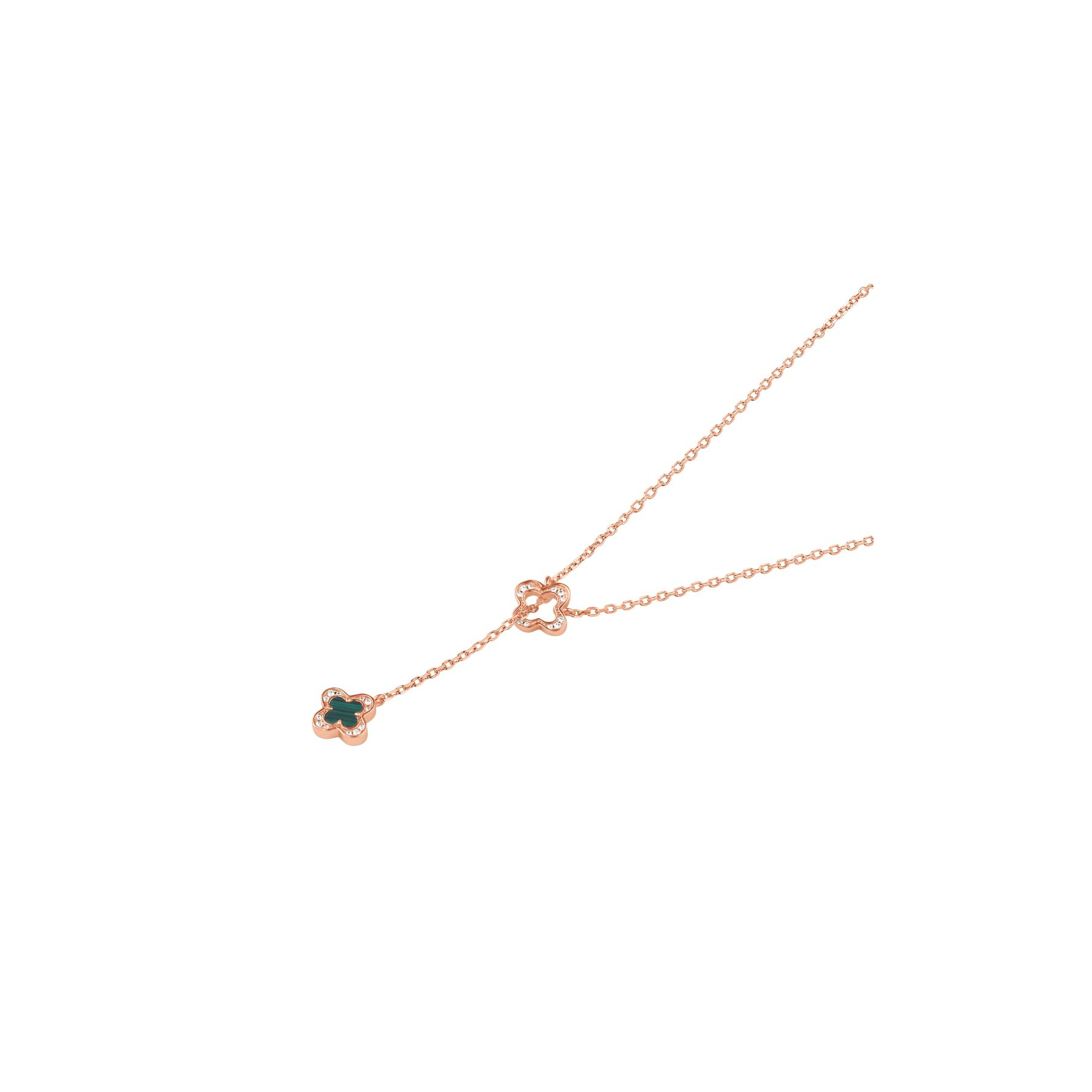 Idéal pour compléter une tenue professionnelle ou habillée, ce collier trèfle en argent rose gold s’accorde avec toutes les pièces . Que vous le portiez seul ou associé à d'autres bijoux, ce bijou femme ne passera pas inaperçu. La combinaison de l' argent rose gold , de la malachite et des zirconiums crée une harmonie parfaite entre modernité et classicisme.