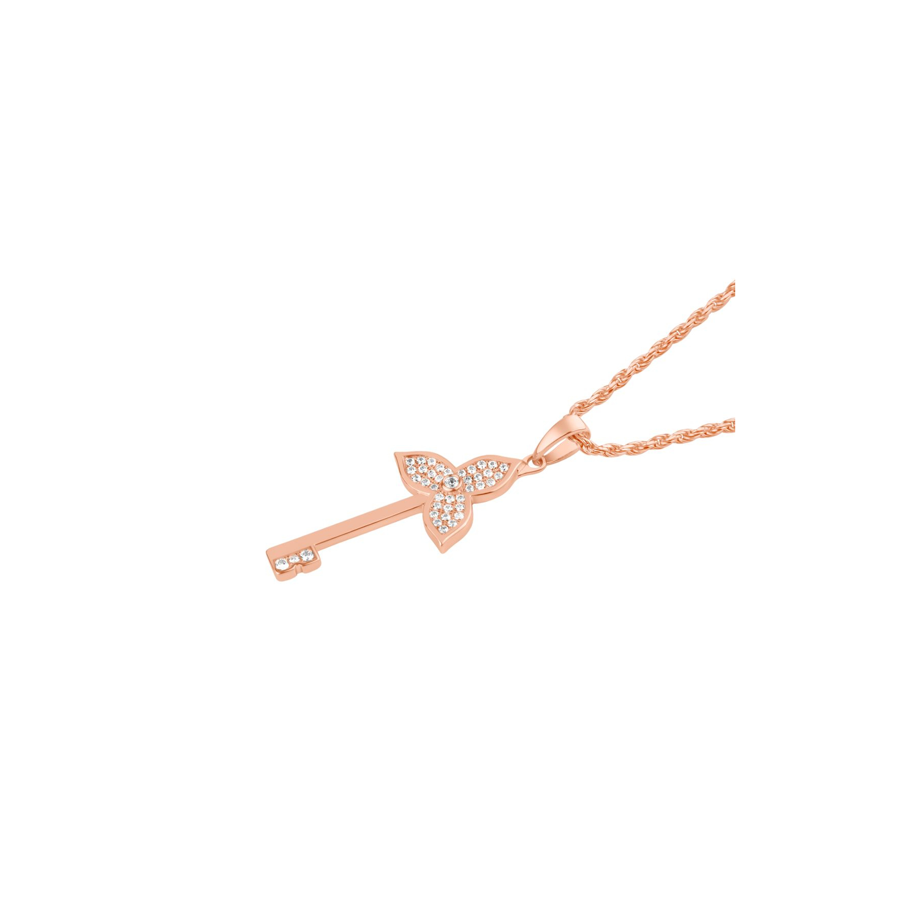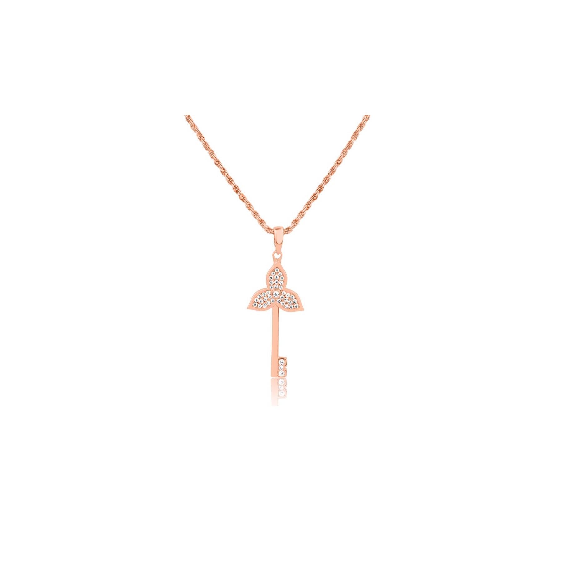FEMMEPendentif clé en argent 925 rose gold, avec motif fleur 3 pétales, serti de zirconiums. Hauteur du pendentif 45 mm.