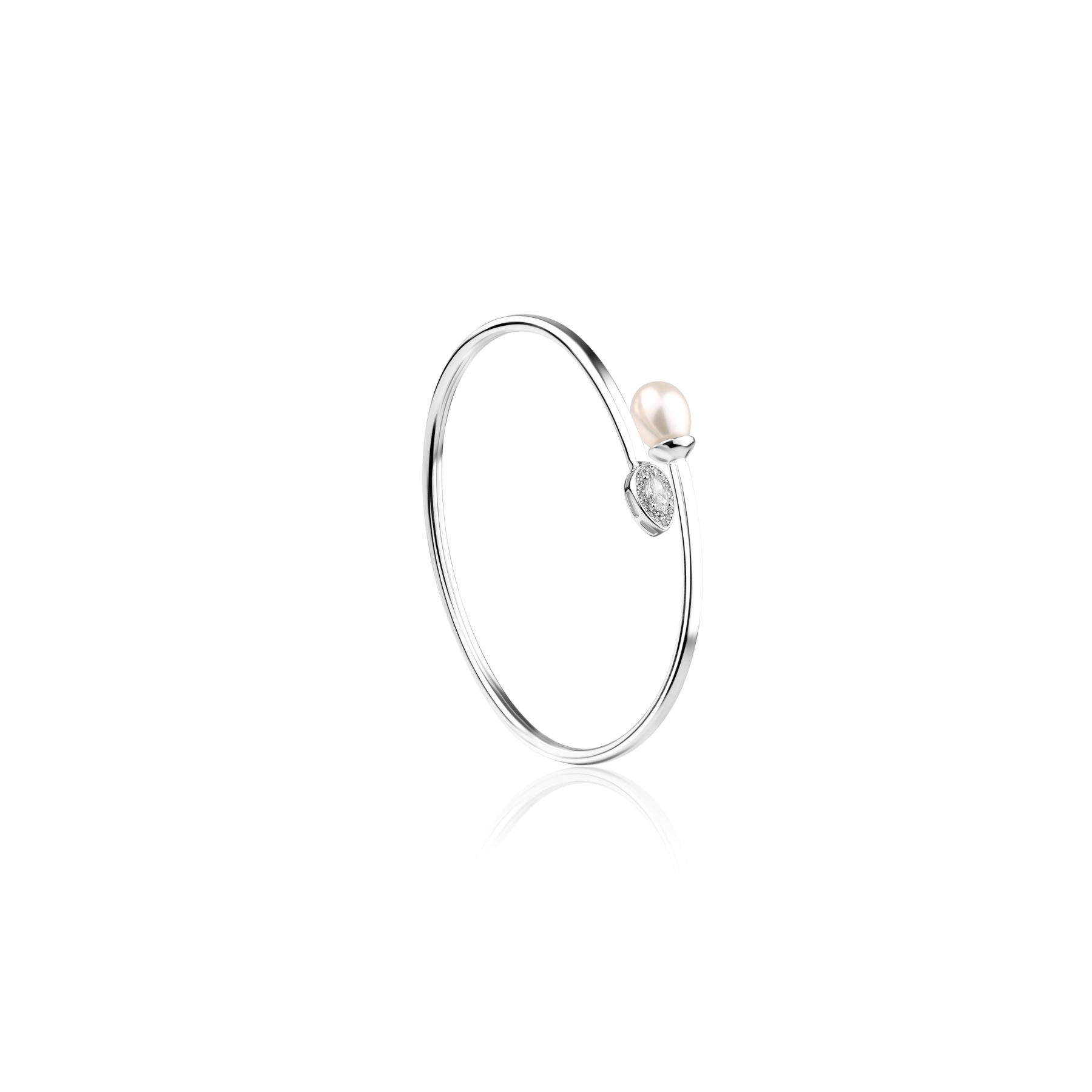 Bracelet toi et moi Excellence en Argent 925 rhodié, orné d'une perle de culture d'eau douce, serti de zirconiums. Épaisseur du jonc 2,40 mm, diamètre 55 mm.