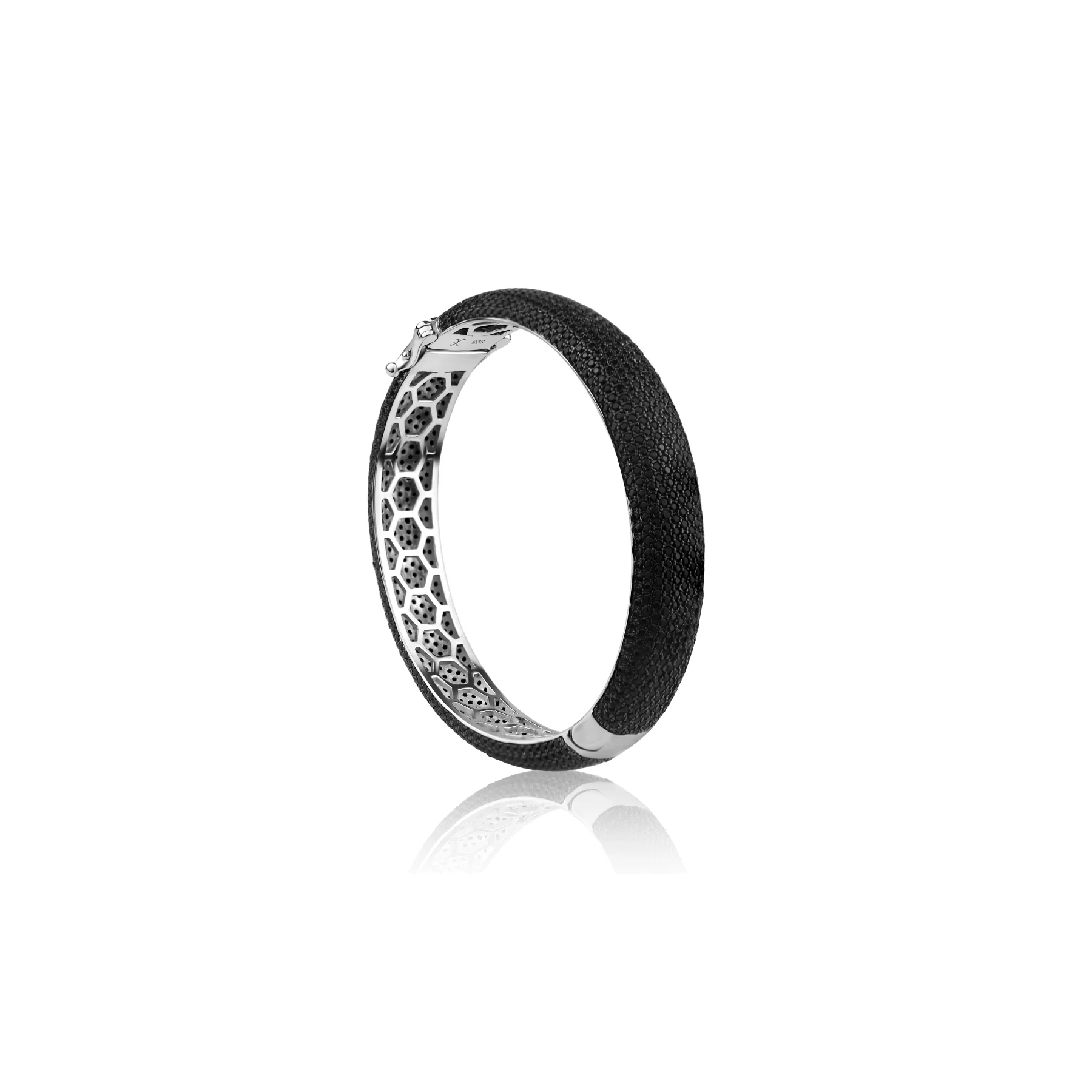 Choisissez ce bracelet pavé pour son esthétique raffinée et son savoir-faire minutieux. Un bijou qui reflète l'éclat des Zirconiums noirs , la qualité de l' Argent 925 et l'inspiration naturelle d'une ruche d'abeille – une alliance parfaite pour les amatrices d'élégance intemporelle.