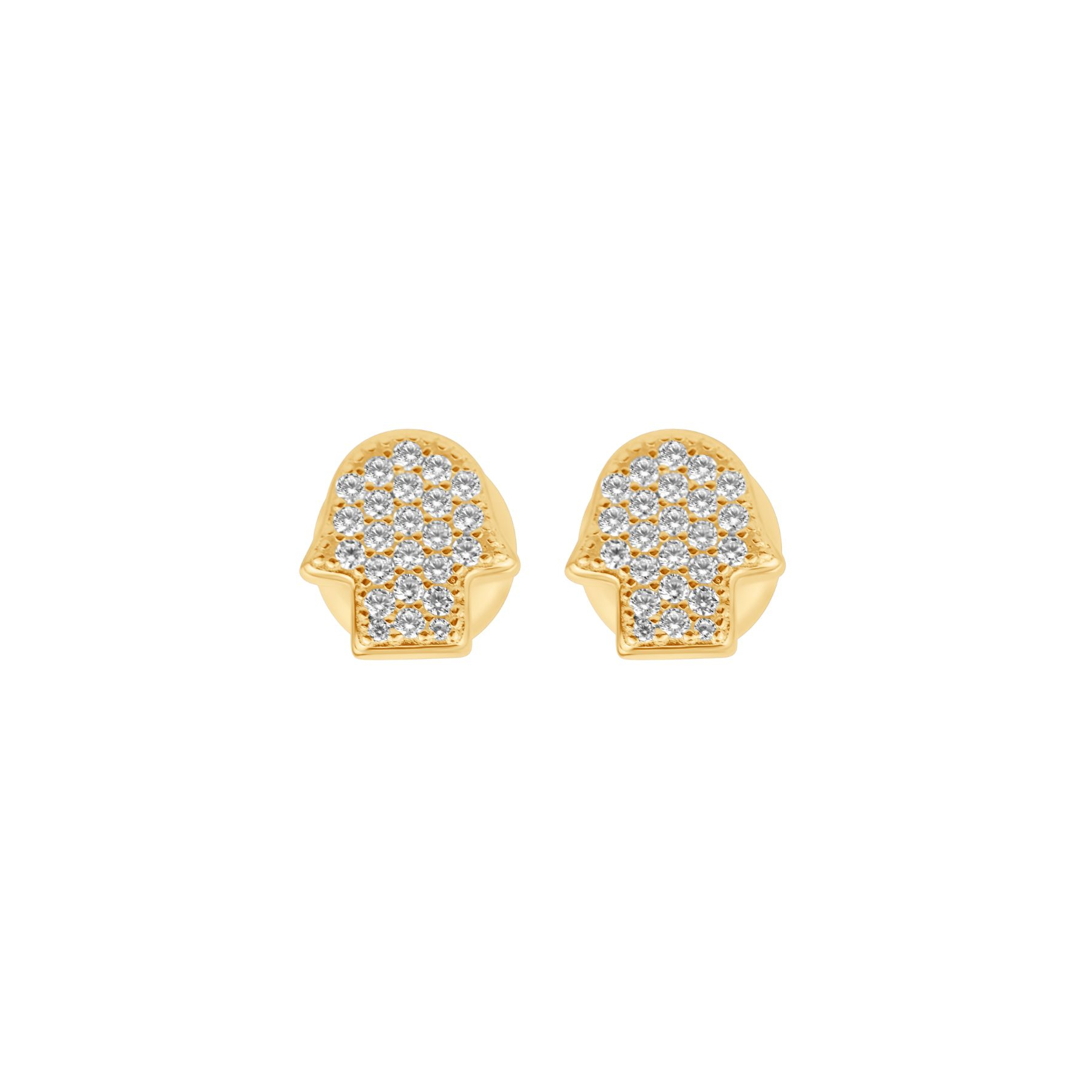 Puces d'oreilles Khmissa Excellence en Plaqué Or 18K 3Mic, serti de zirconiums. Dimensions du motif 8,50 x 7,80 mm.