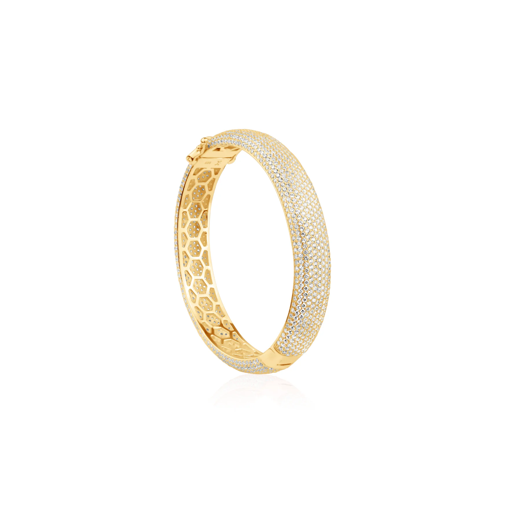 Chaque détail de ce bracelet a été pensé pour les femmes exigeantes. Le plaqué or 18K offre une teinte chaude et enveloppante, tandis que les zirconiums blancs apportent une brillance comparable à celle des pierres précieuses. La structure en nid d'abeille , à la fois légère et résistante, témoigne d'un savoir-faire artisanal exceptionnel.