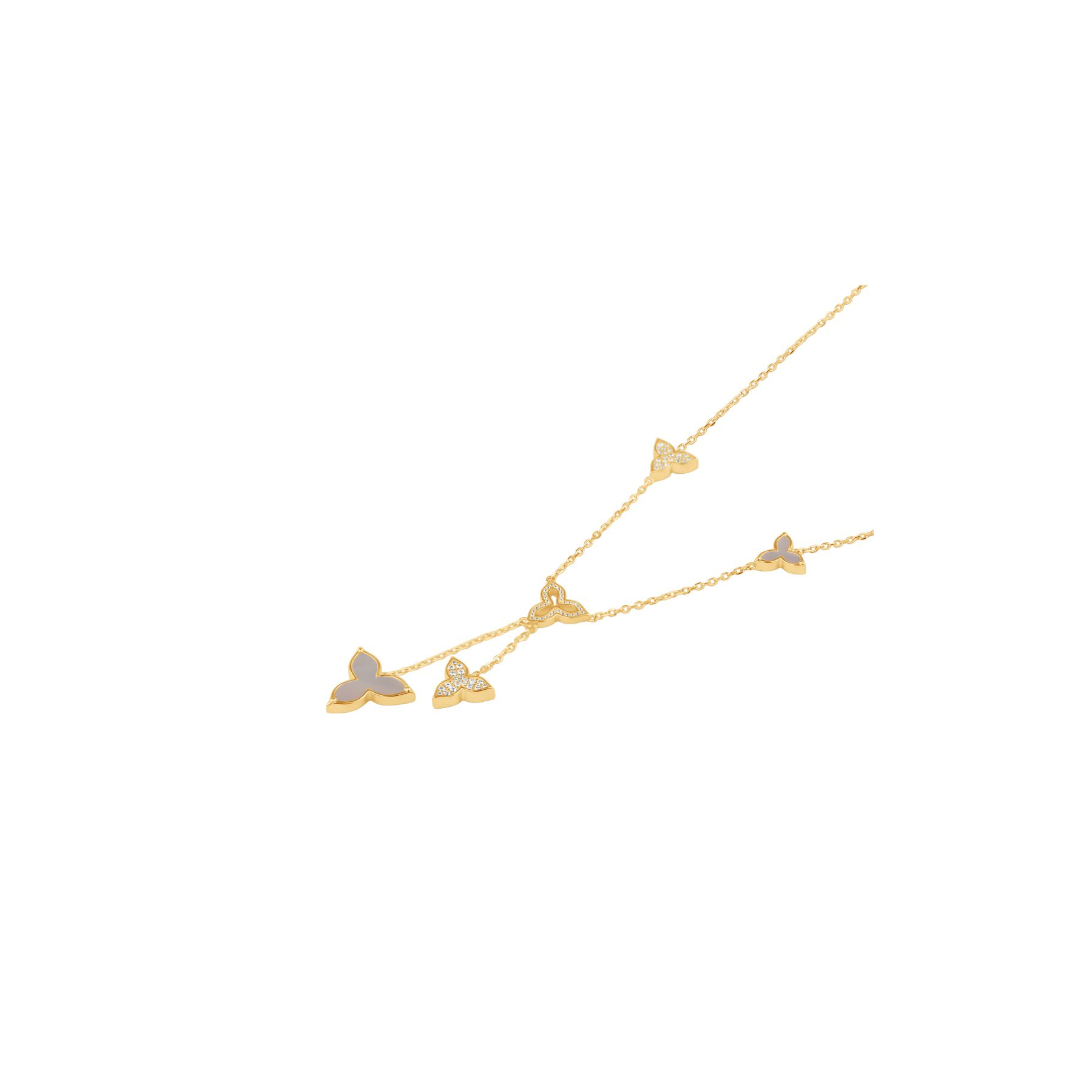 La nacre , utilisée sur l'un des pendentifs, offre des reflets changeants qui captent la lumière avec grâce. Associée au Plaqué Or 18K et aux zirconiums blancs , elle crée un contraste harmonieux entre douceur et brillance. Ce Collier Flower est idéal pour ajouter une touche d'élégance à vos tenues quotidiennes comme à vos looks de soirée.