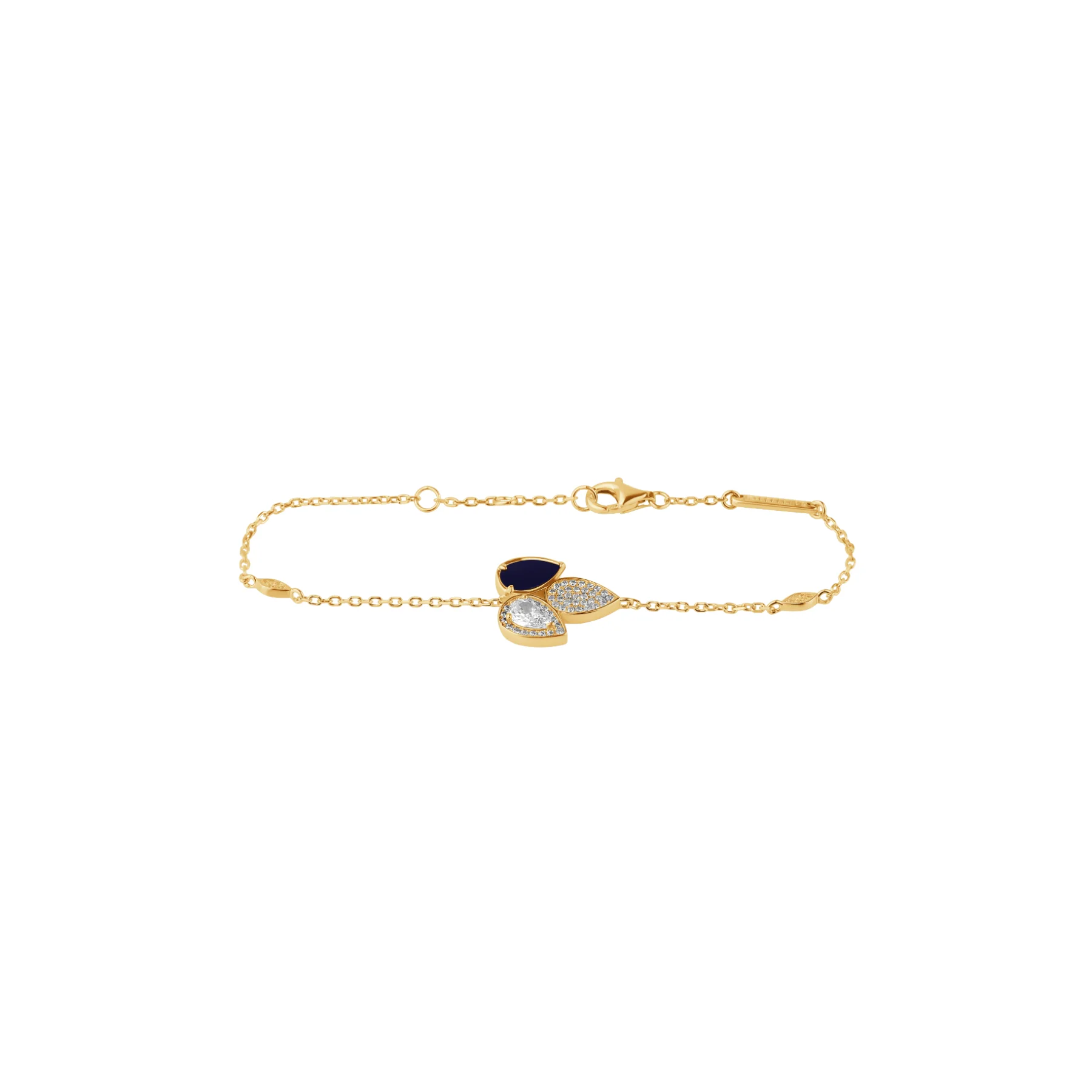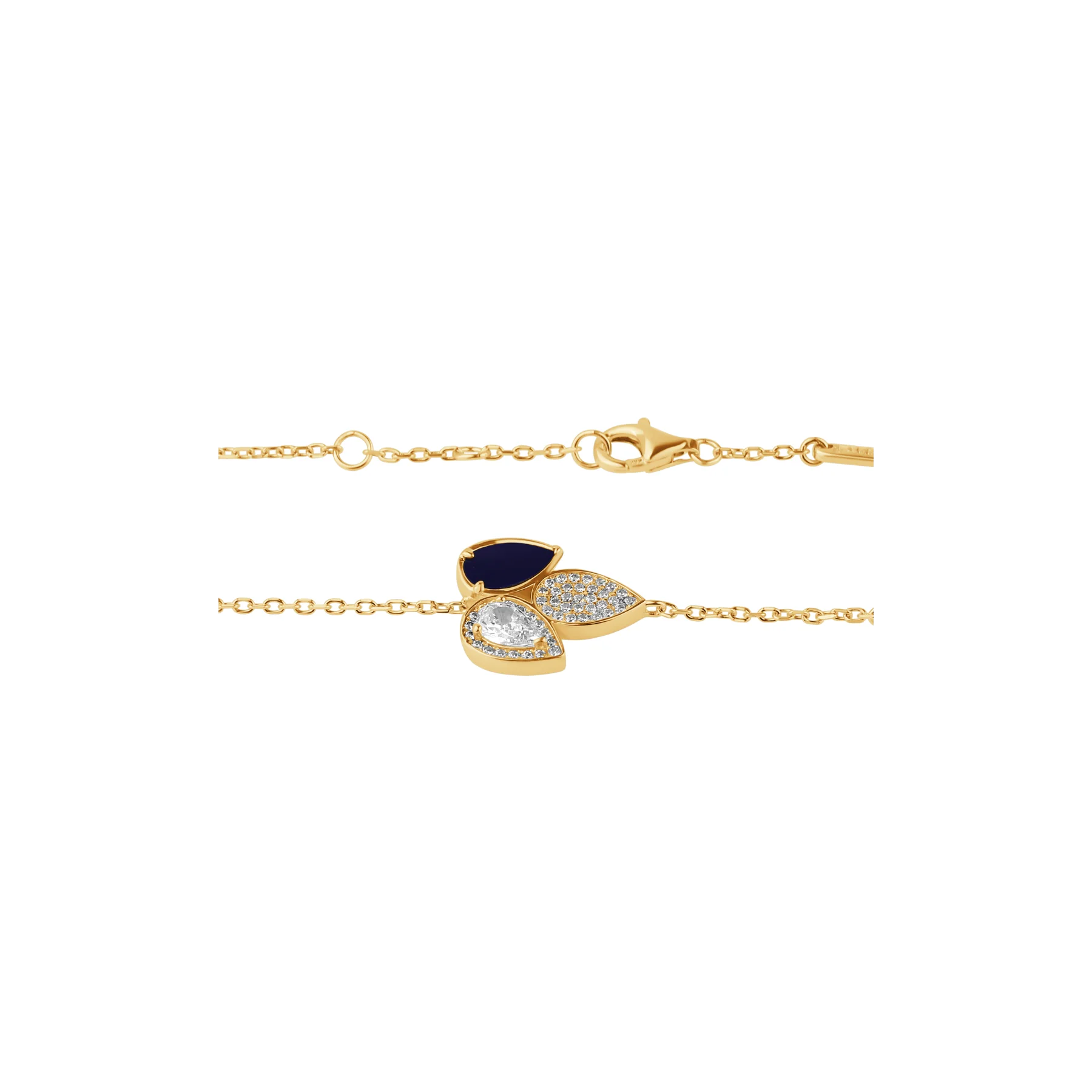 Ce bracelet plaqué or est aussi un excellent choix pour marquer un moment précieux. Le lapis lazuli, pierre emblématique de sagesse et de protection, ajoute une touche symbolique forte à l’ensemble. Les zirconiums, soigneusement disposés, apportent quant à eux une brillance subtile sans excès.
