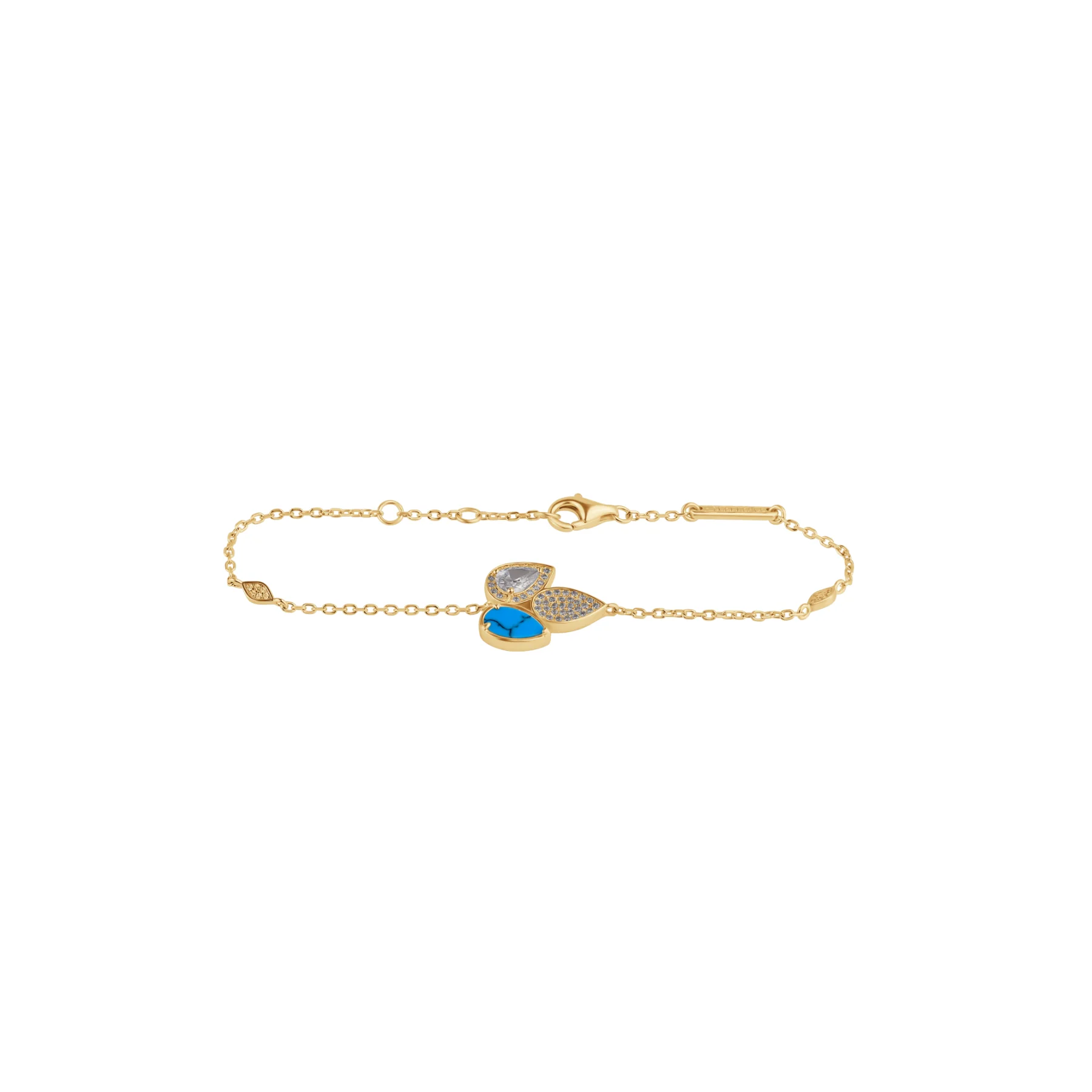La Gourmette Tulipe Excellence est conçue pour ceux qui recherchent un bijou à la fois chic et pratique. Le plaqué or 18K 3Mic assure une durabilité remarquable tout en mettant en valeur les pierres turquoise zirconiums. Ce bijou est parfait pour offrir ou pour compléter votre collection personnelle.