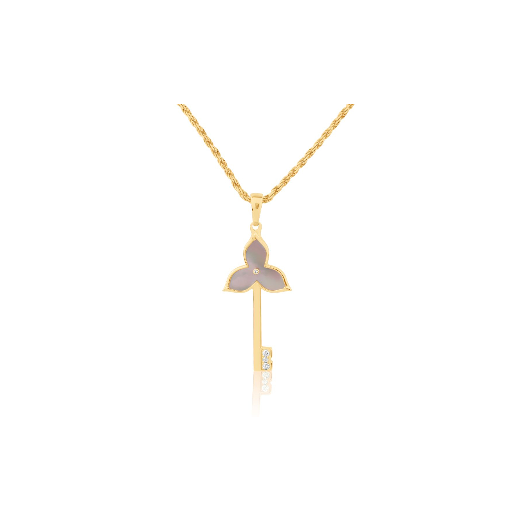 Le Pendentif Key Flower Excellence en Plaqué Or 18K 3Mic est un bijou délicat et raffiné, conçu pour sublimer votre tenue avec une touche florale pleine de grâce. Ce pendentif original est orné d’un motif en forme de fleur à trois pétales, symbolisant la légèreté et la beauté naturelle.