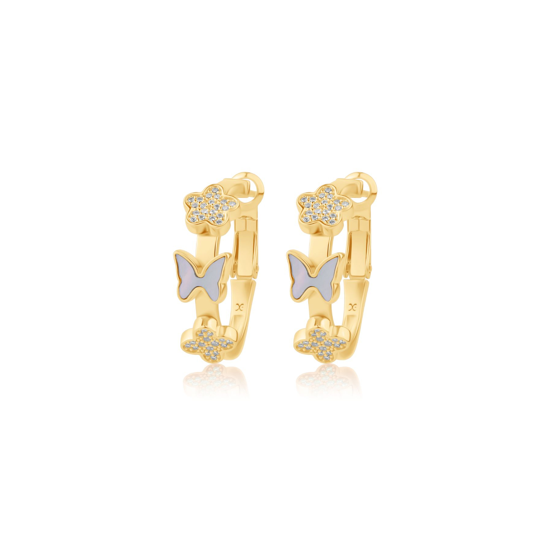 Les Créoles Garden Excellence Plaqué Or 18K sont une ode à la nature et à la féminité. Raffinées et symboliques, elles se distinguent par leurs trois motifs soigneusement travaillés : un papillon orné de nacre, une fleur à cinq pétales et un trèfle délicatement serti de zirconiums. Chaque détail a été pensé pour offrir un bijou unique, poétique et lumineux.