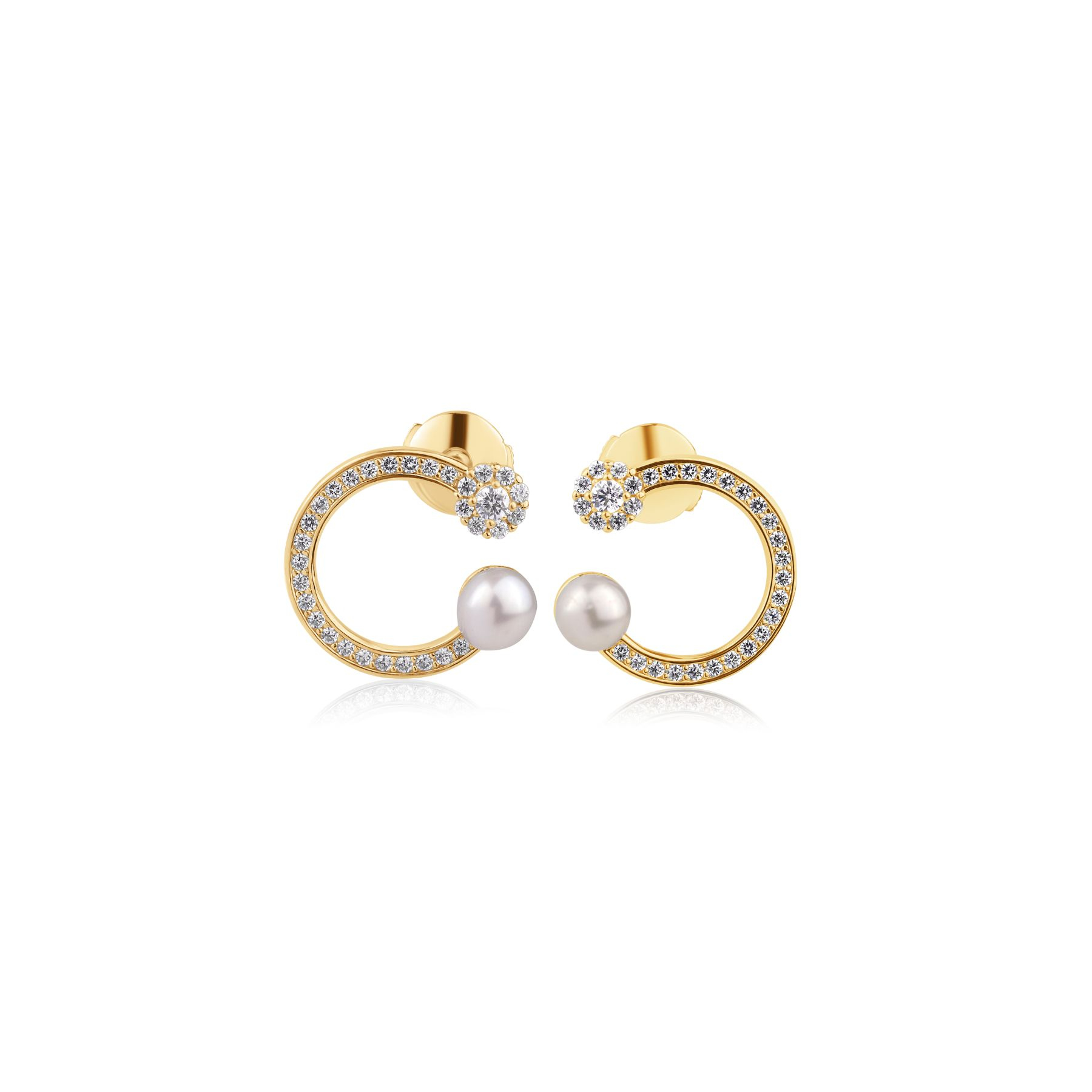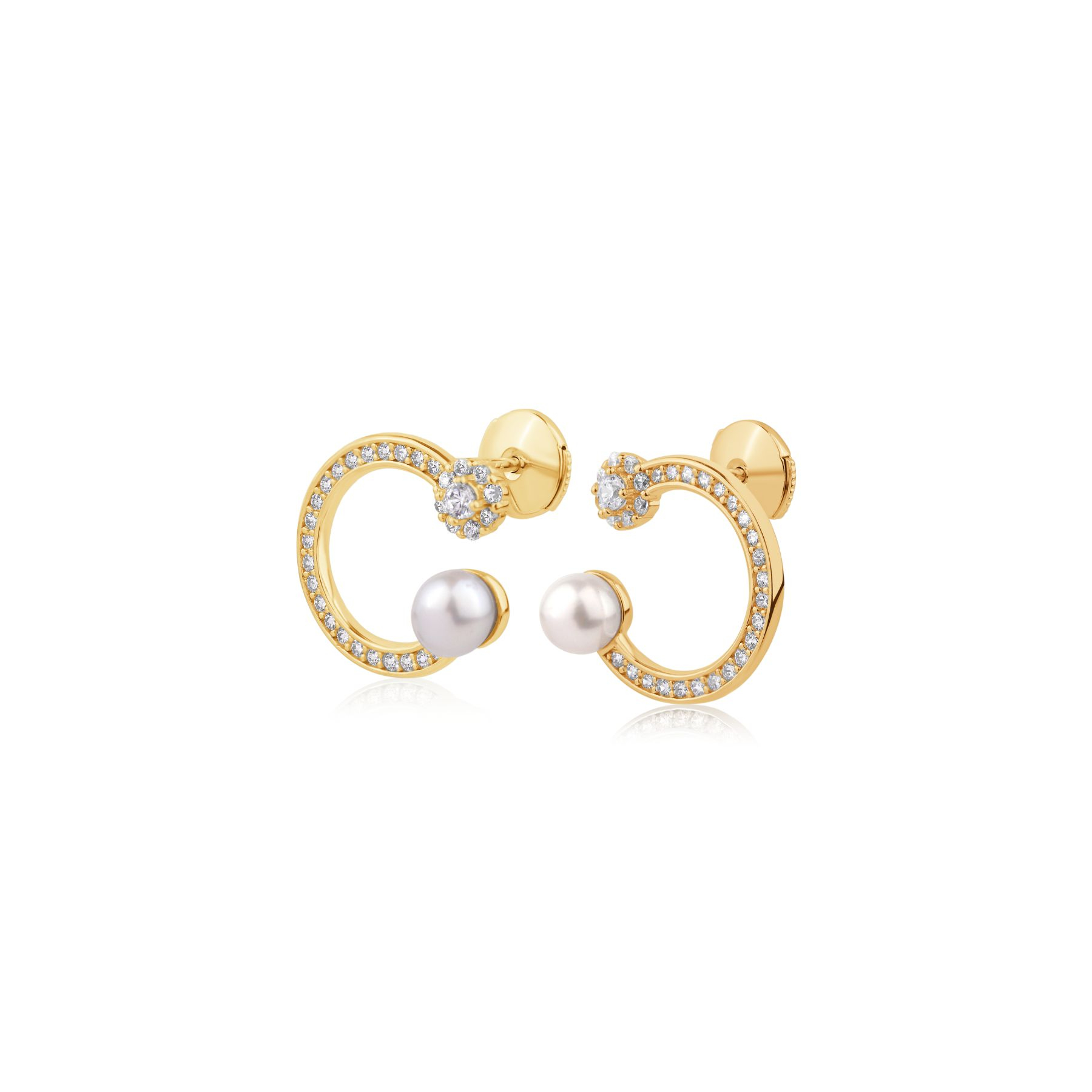 Leur design circulaire de 18 mm de diamètre est à la fois classique et moderne, offrant un équilibre parfait entre discrétion et sophistication. Chaque paire est ornée de perles douces et naturelles qui captent la lumière avec subtilité, accompagnées de zirconiums minutieusement sertis pour un éclat raffiné.