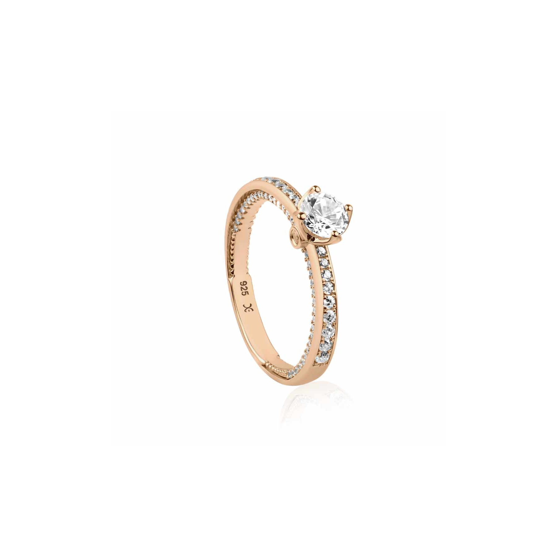 La Bague solitaire Excellence Argent 925 R.Gold est un bijou raffiné qui allie élégance et modernité. Conçue en Argent 925 rhodié à l’or rose, cette bague se distingue par son éclat subtil et sa finition soignée, offrant un accessoire à la fois précieux et durable.