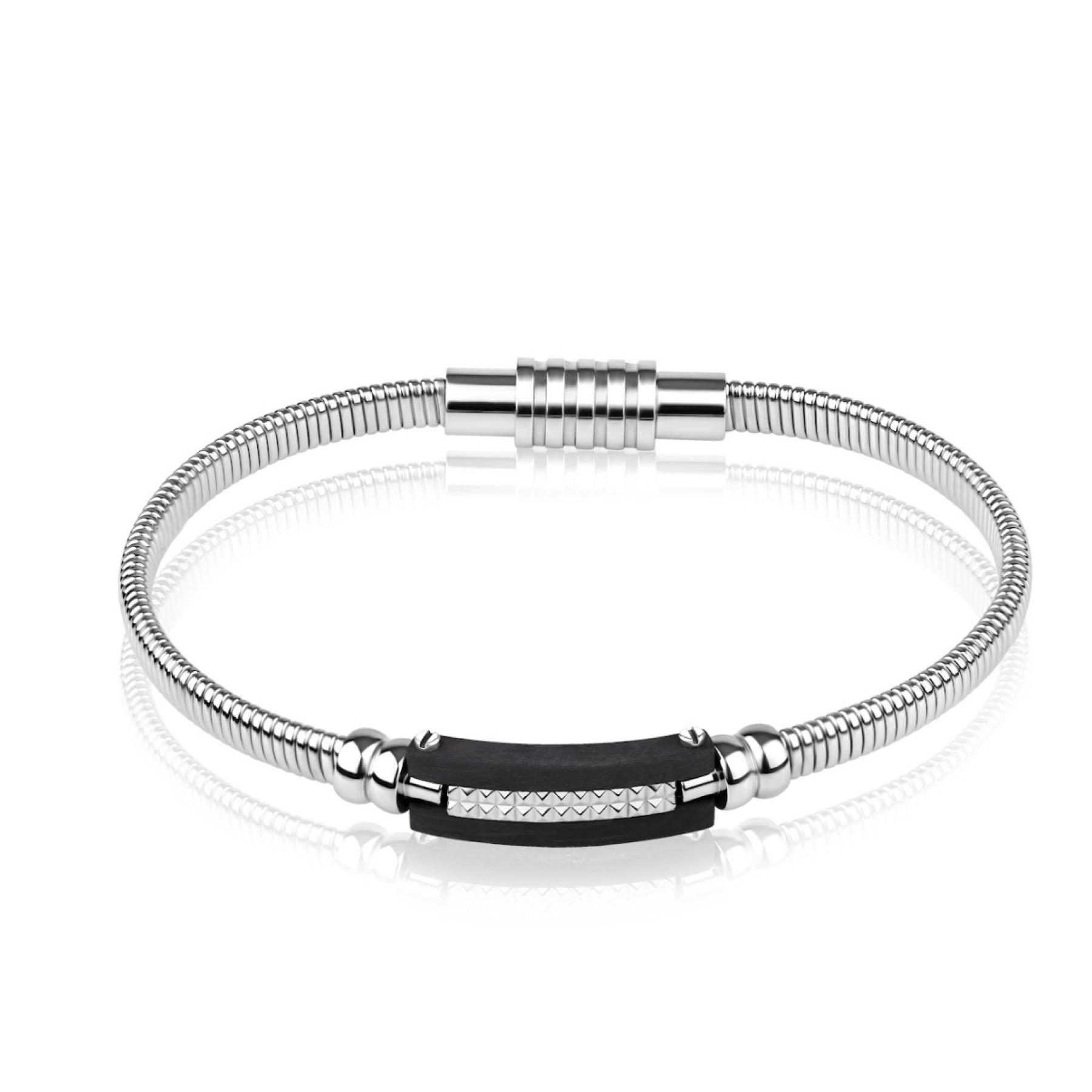 Bracelet en acier 316L, pièce centrale en carbone. Longueur 205 mm.