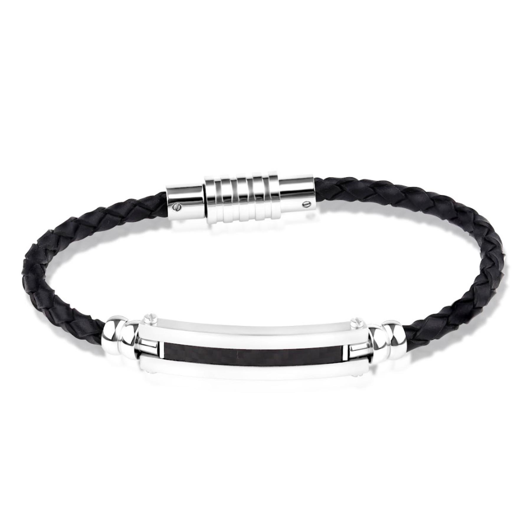 Bracelet en cuir tressé, avec pièce centrale et fermoir en acier 316L.