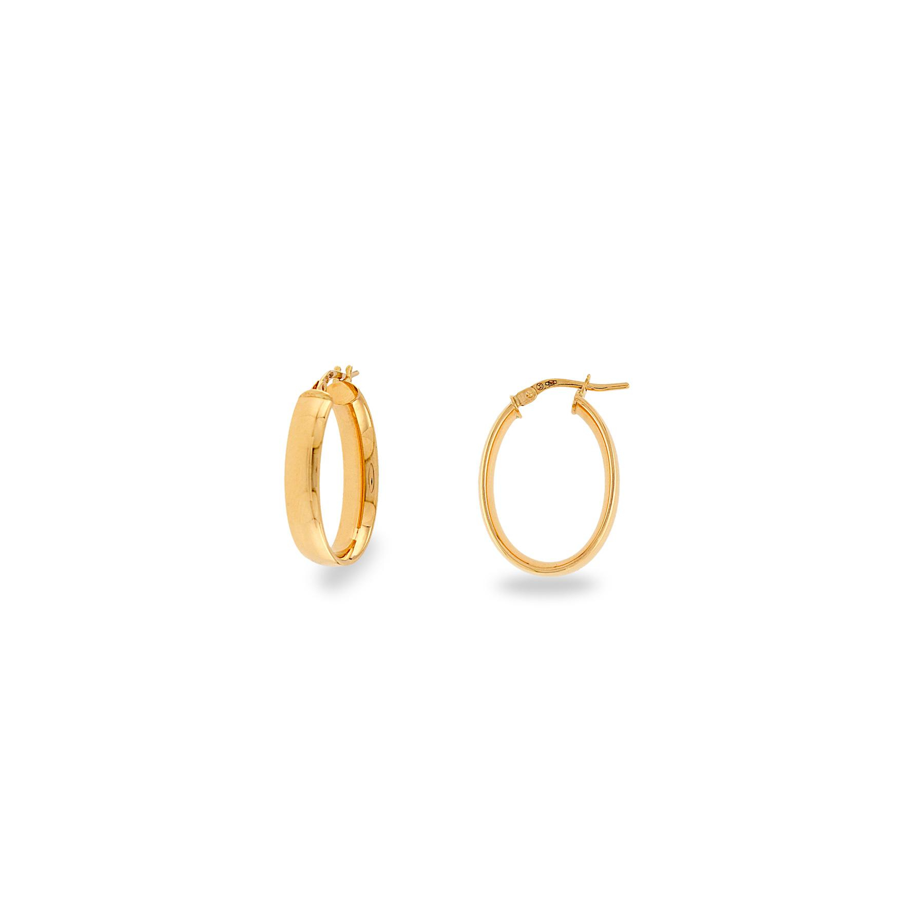 Créole ovales bombées en Or jaune 750/1000. Dimensions 23 x 18 mm, épaisseur 4,8 mm.