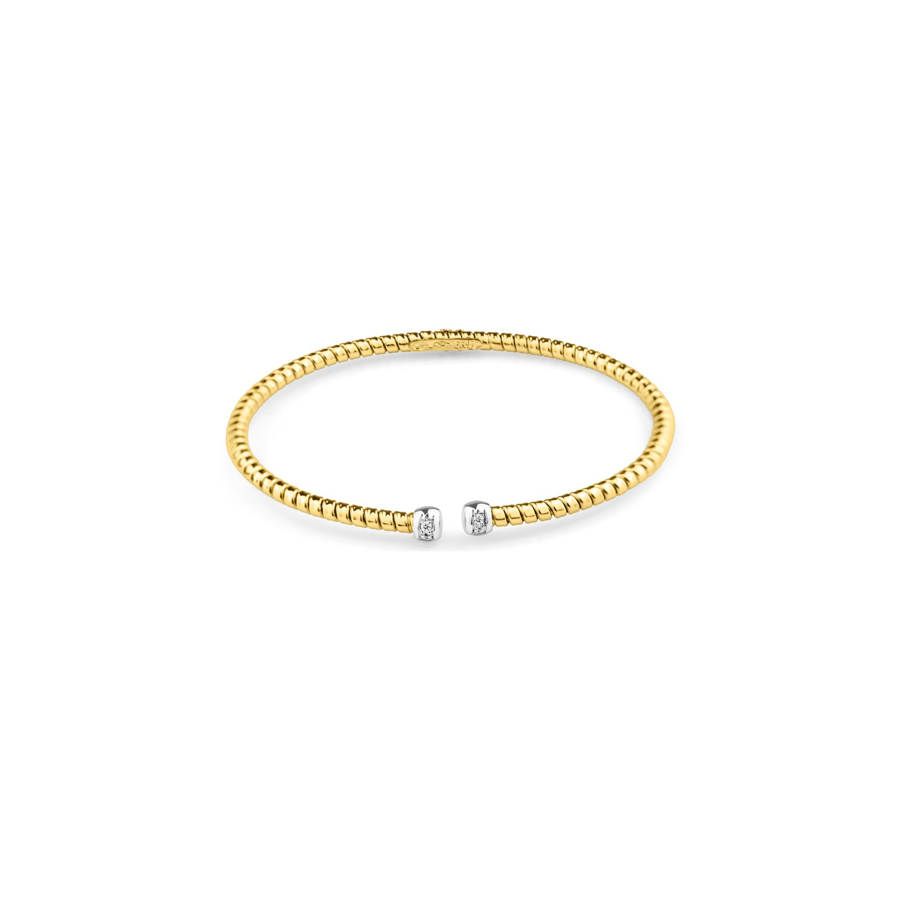 Le Bracelet Excellence Or jaune 750/1000 est un bijou unique qui combine l’élégance intemporelle de l’or jaune et la brillance des diamants. Ce bracelet spirale arrondi, d’une largeur de 2,75 mm, présente une conception raffinée et moderne, parfaitement adaptée à ceux qui recherchent un accessoire à la fois chic et original. Orné de deux embouts sertis de diamants pour un total de 0,05 ct, il reflète la qualité et le savoir-faire exceptionnels des créateurs de bijoux italiens.