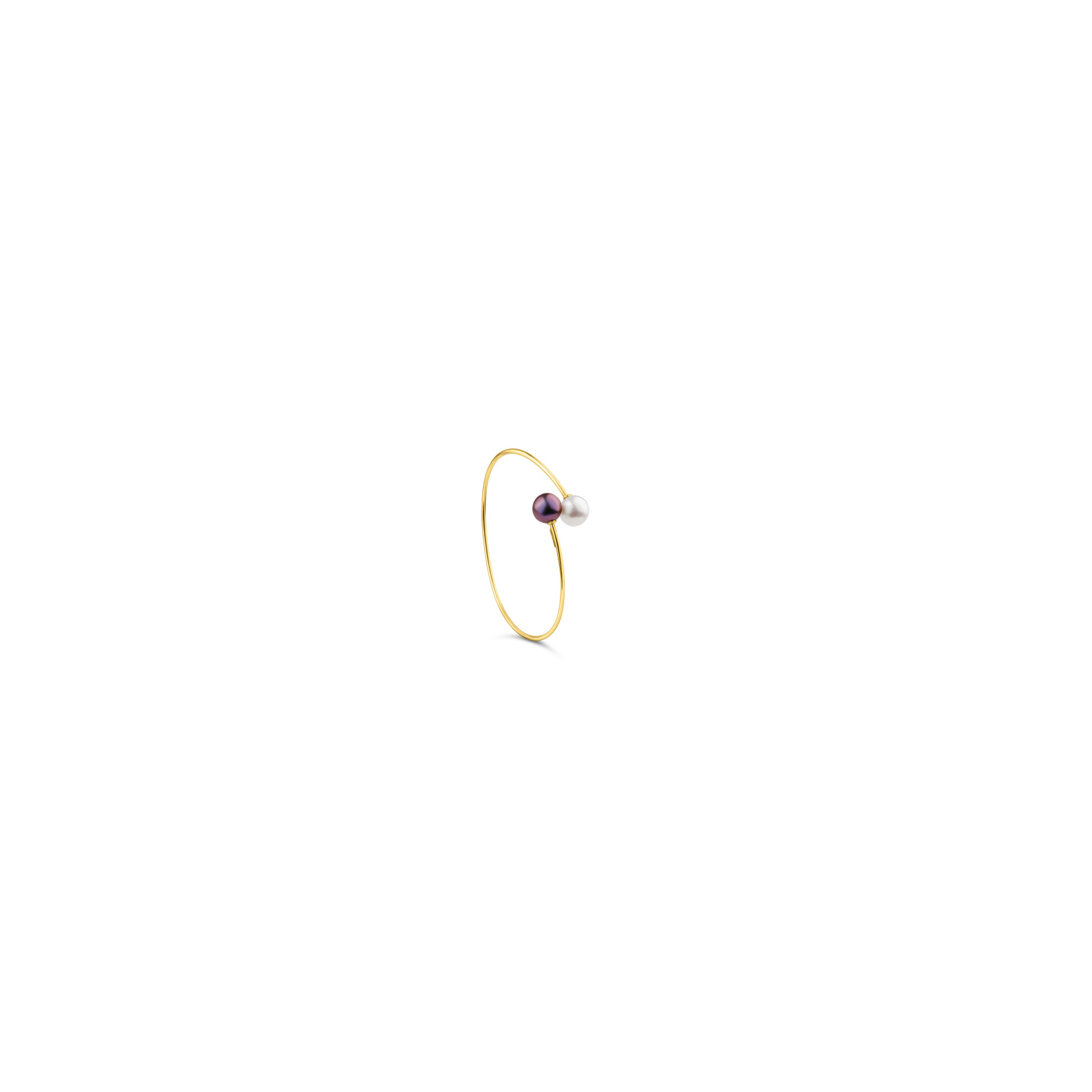 Jonc toi & moi de la collection Oceania en Or 750/1000 avec 2 perles de culture d'eau douce de 9,50 mm de diamètre. Diamètre du bracelet 58 x 48 mm. Epaisseur du bracelet 1,50 mm.