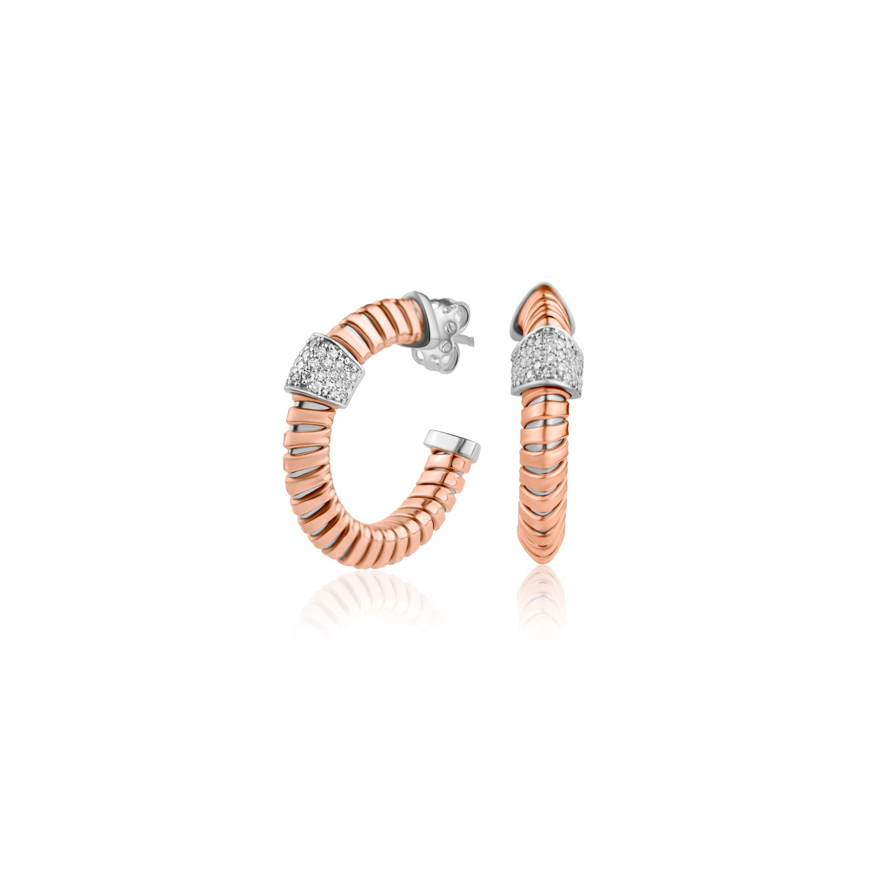 Les créoles spirale en Or rose 18k sont également un choix parfait pour ceux qui cherchent un bijou intemporel, mais avec un twist moderne grâce au motif pyramidal et l'éclat des diamants. Ces créoles, serties de diamants pour un total de 0,47 ct, incarnent le raffinement et la qualité.