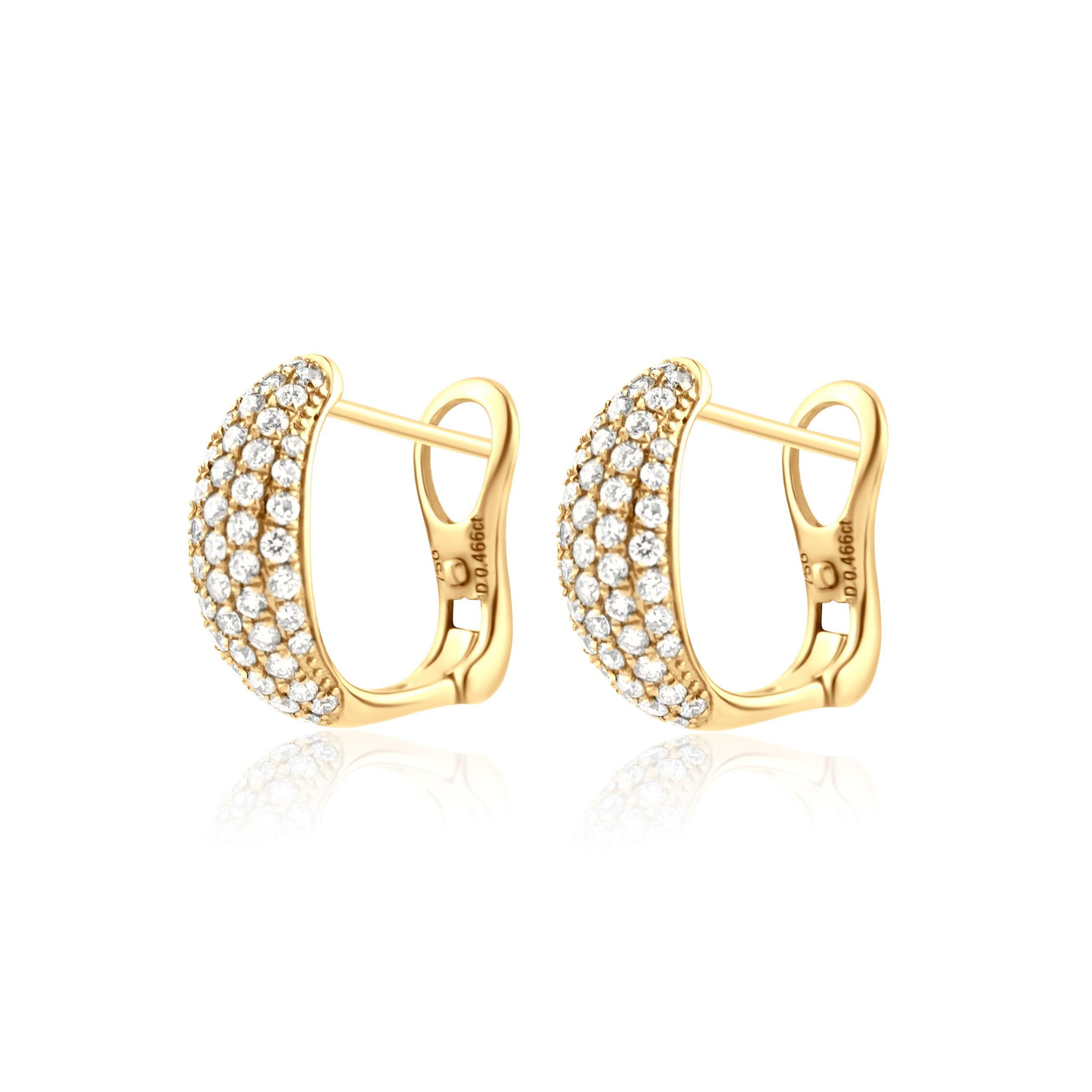 Créoles bombées en Or jaune 750/1000, serties de diamants pour 0,932 ct. Dimensions de la boucle 15 x 6 mm.