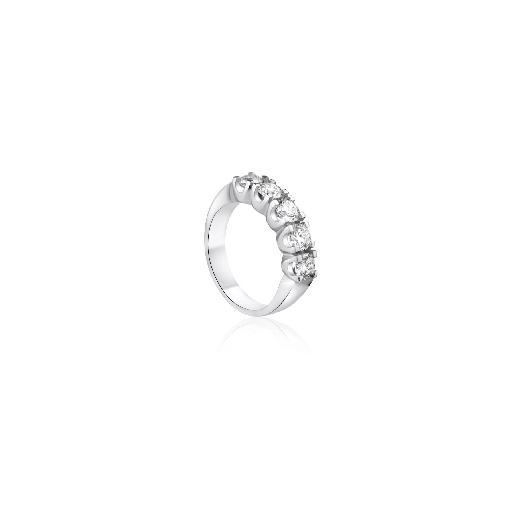 Cette demi alliance en Or gris 750/1000, sertie de 5 diamants taille brillant G/VS1 pour un total de 1,25 carat, est le symbole d'une élégance intemporelle. Elle constitue l'option idéale pour une alliance de mariage unique, alliant raffinement et qualité. Fabriquée en or 18k, cette demi alliance reflète un savoir-faire exceptionnel et une attention méticuleuse aux détails.